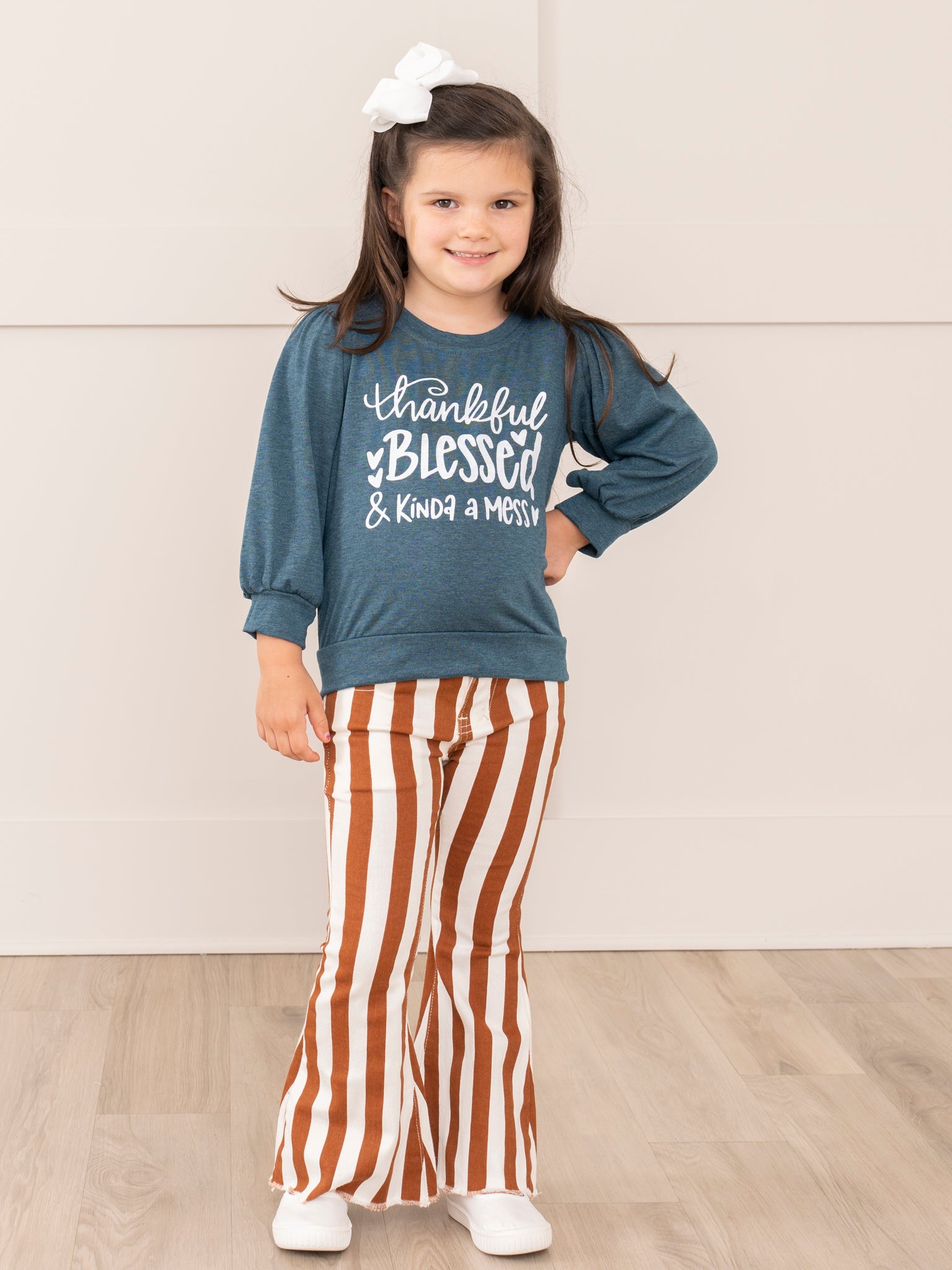 Green & Brown Stripes "Kinda a Mess" Bell Bottoms Outfit