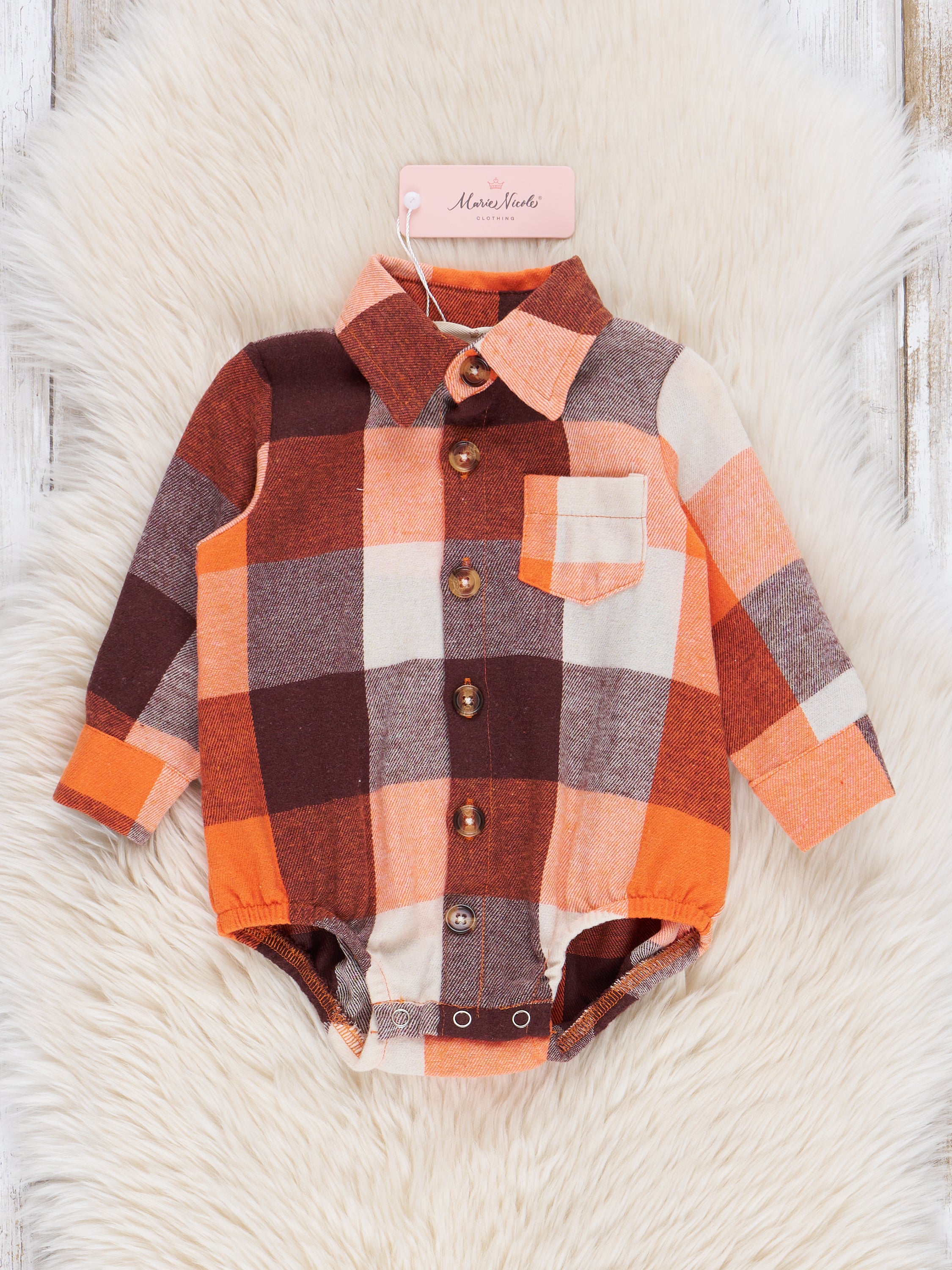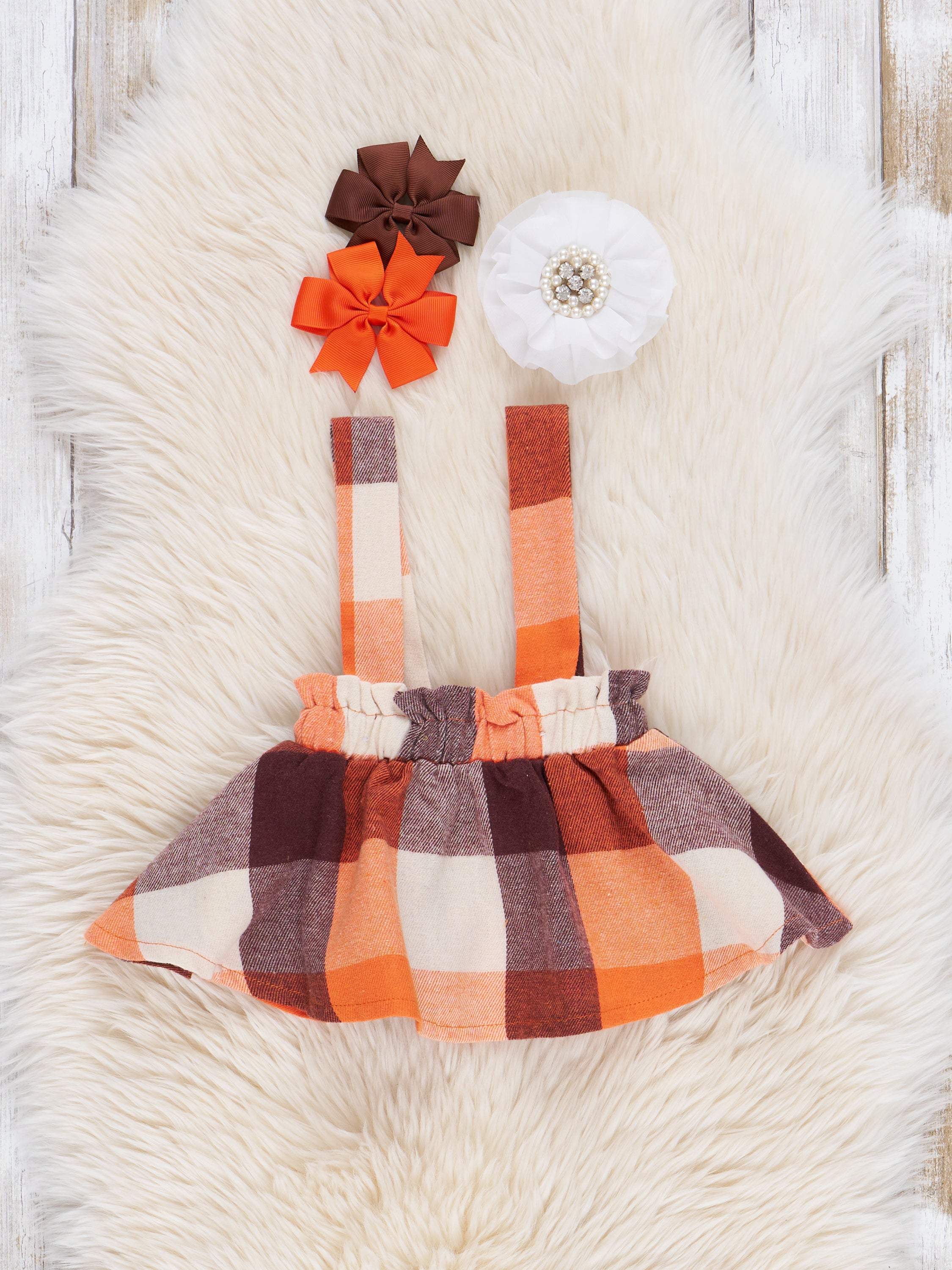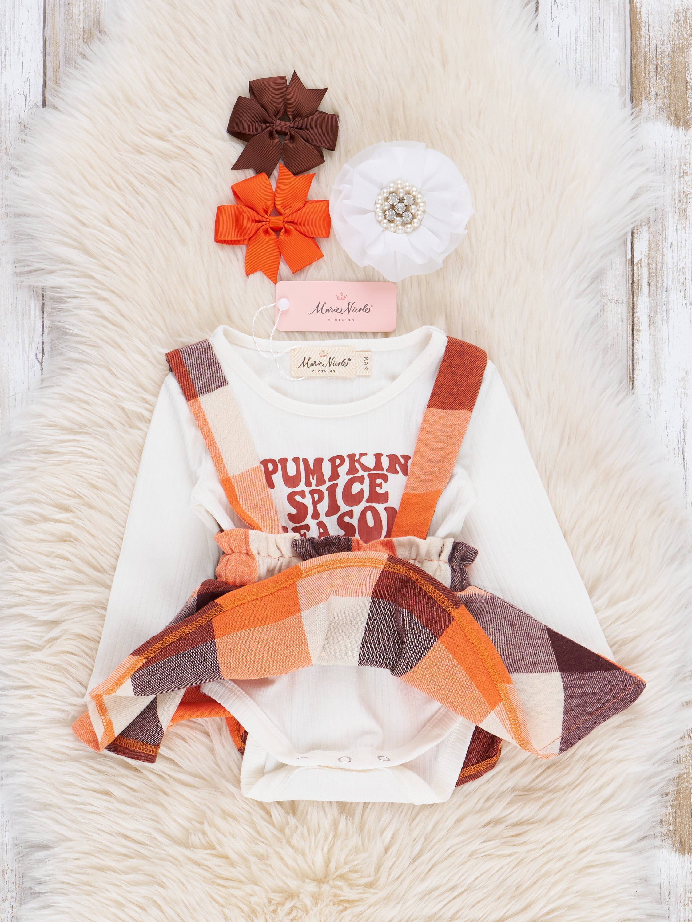 Pumpkin Spice Plaid Flannel Bubble Skirtall Set
