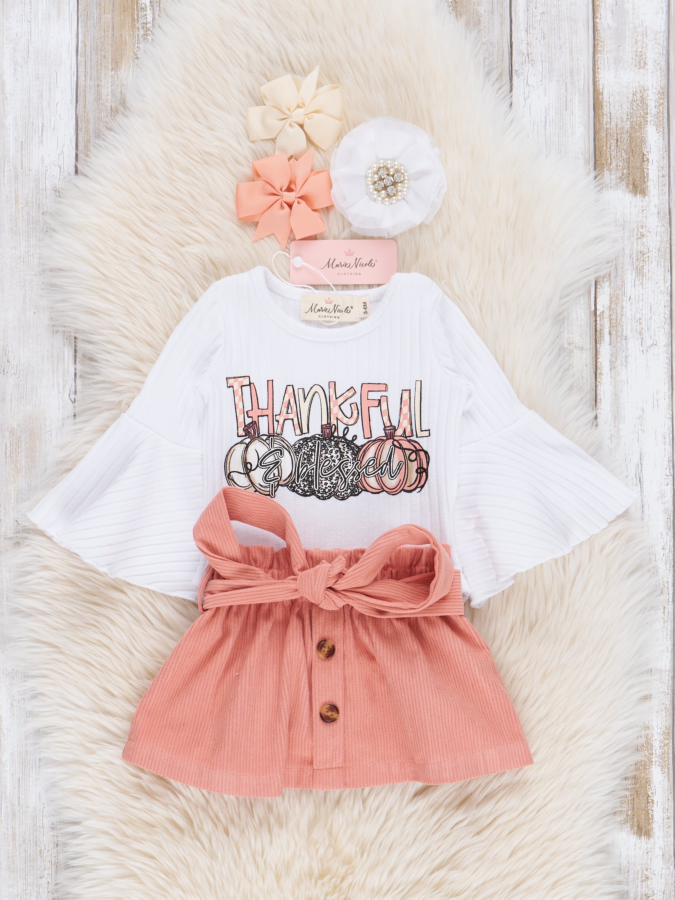 Peach Thankful Pumpkins Bubble Outfit w/ Corduroy Skirt
