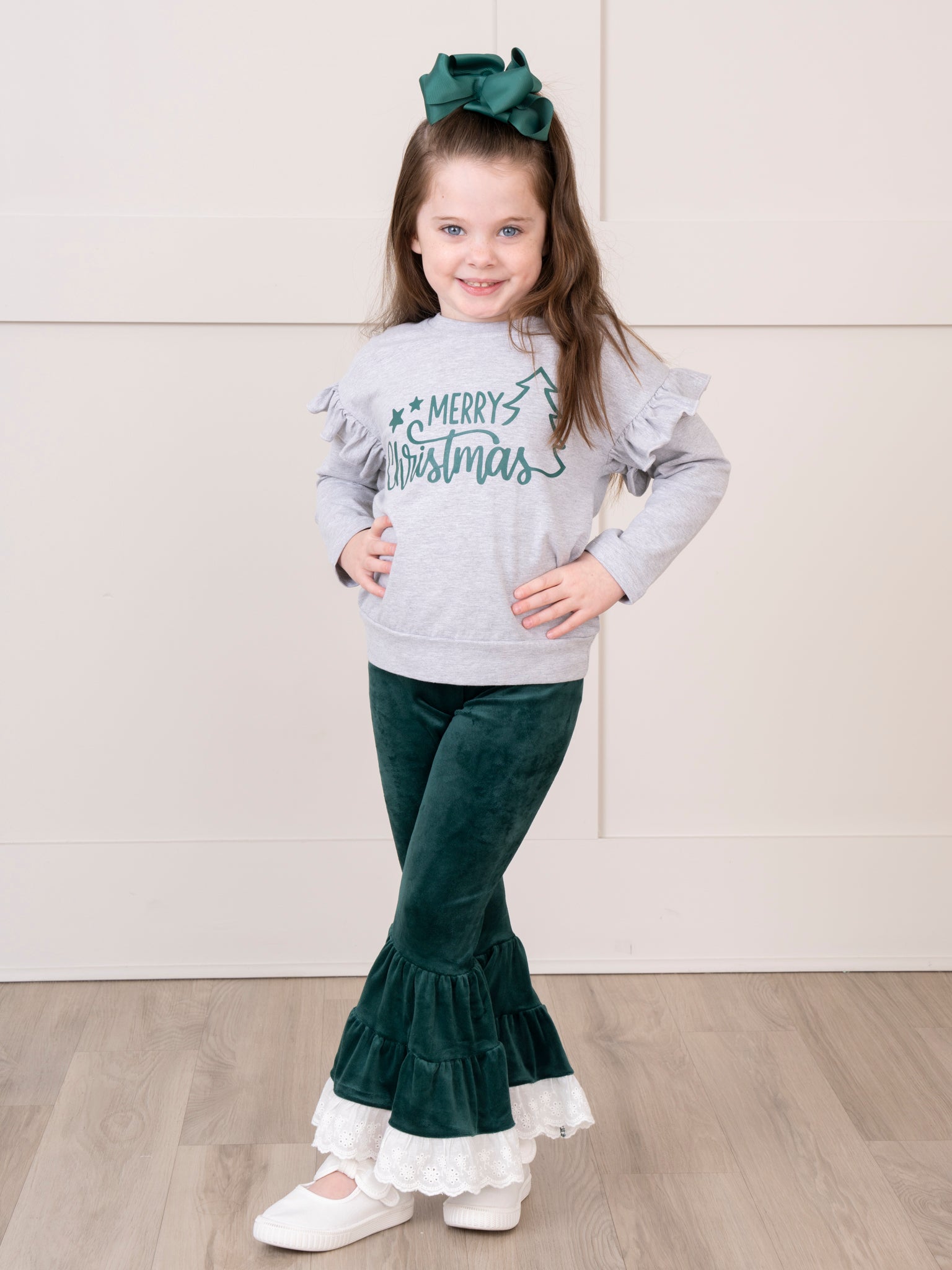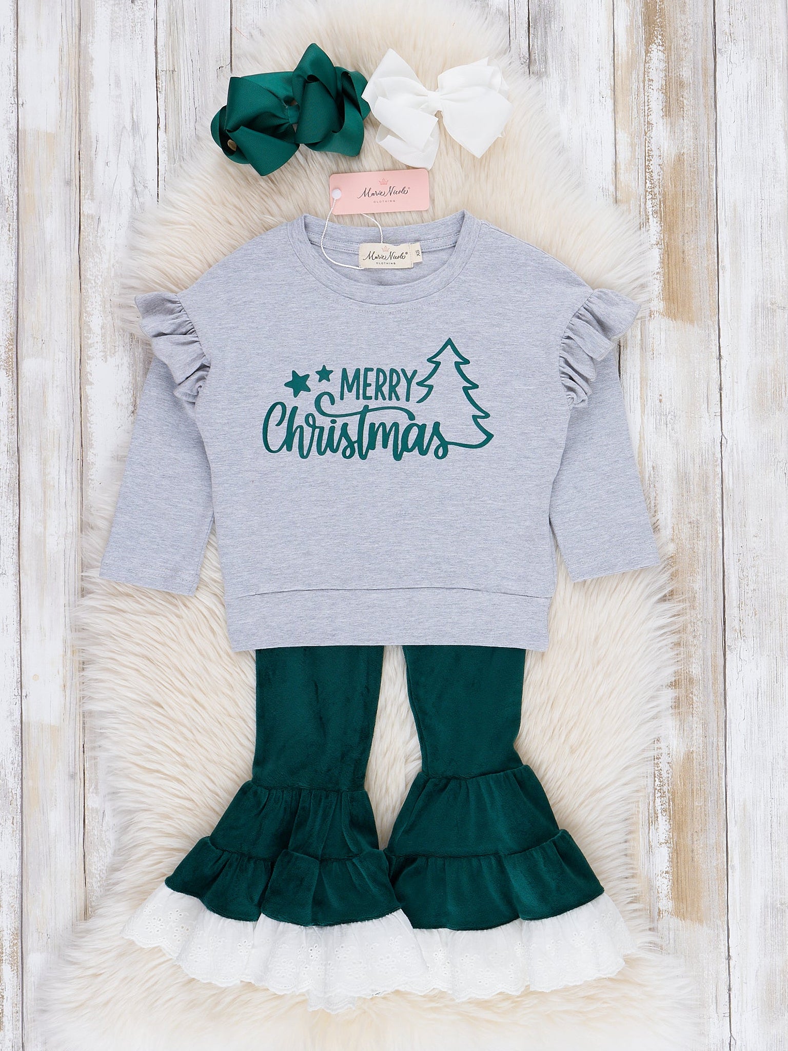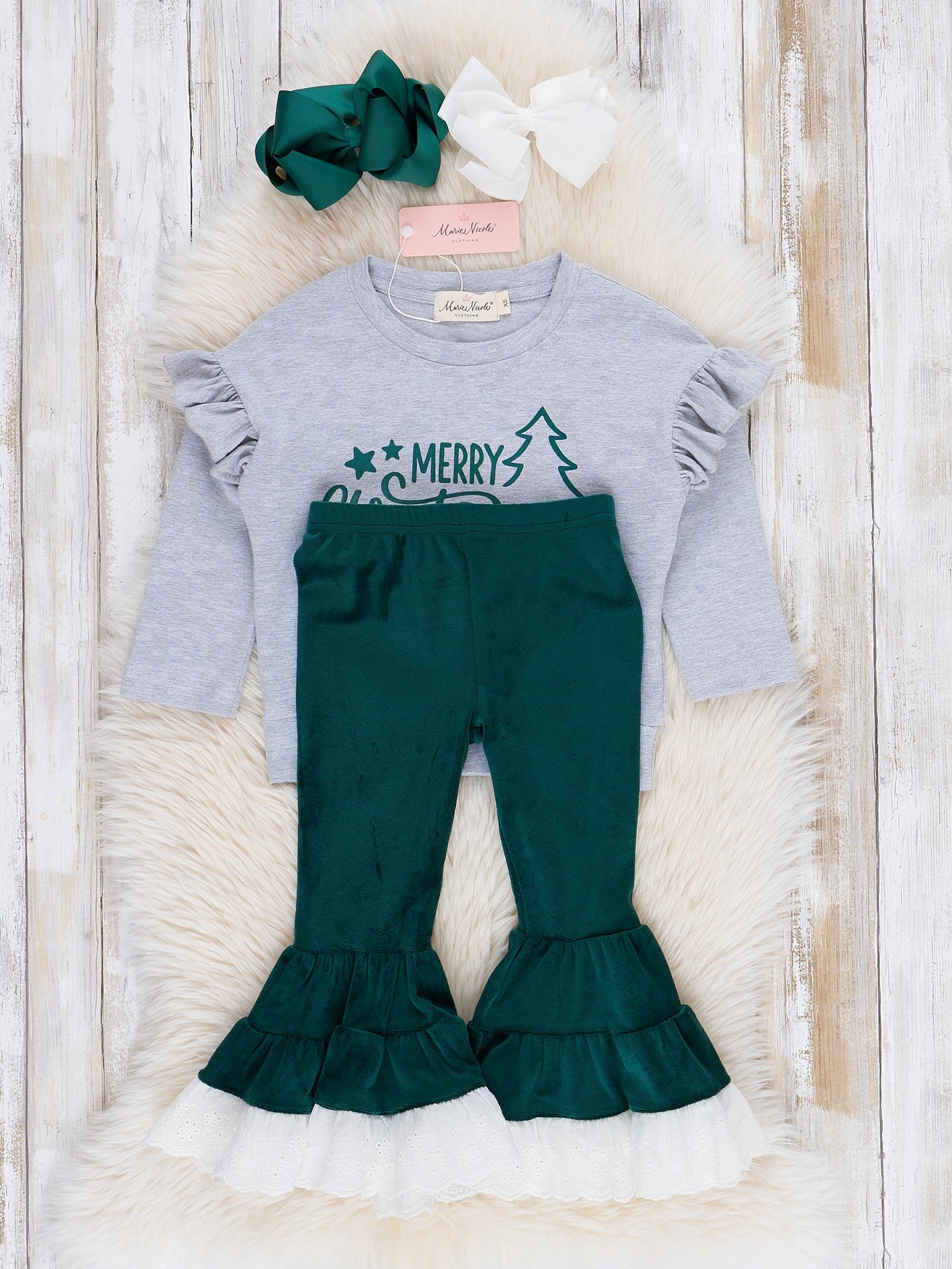 Emerald Merry Christmas Velvet Bell Bottom Outfit