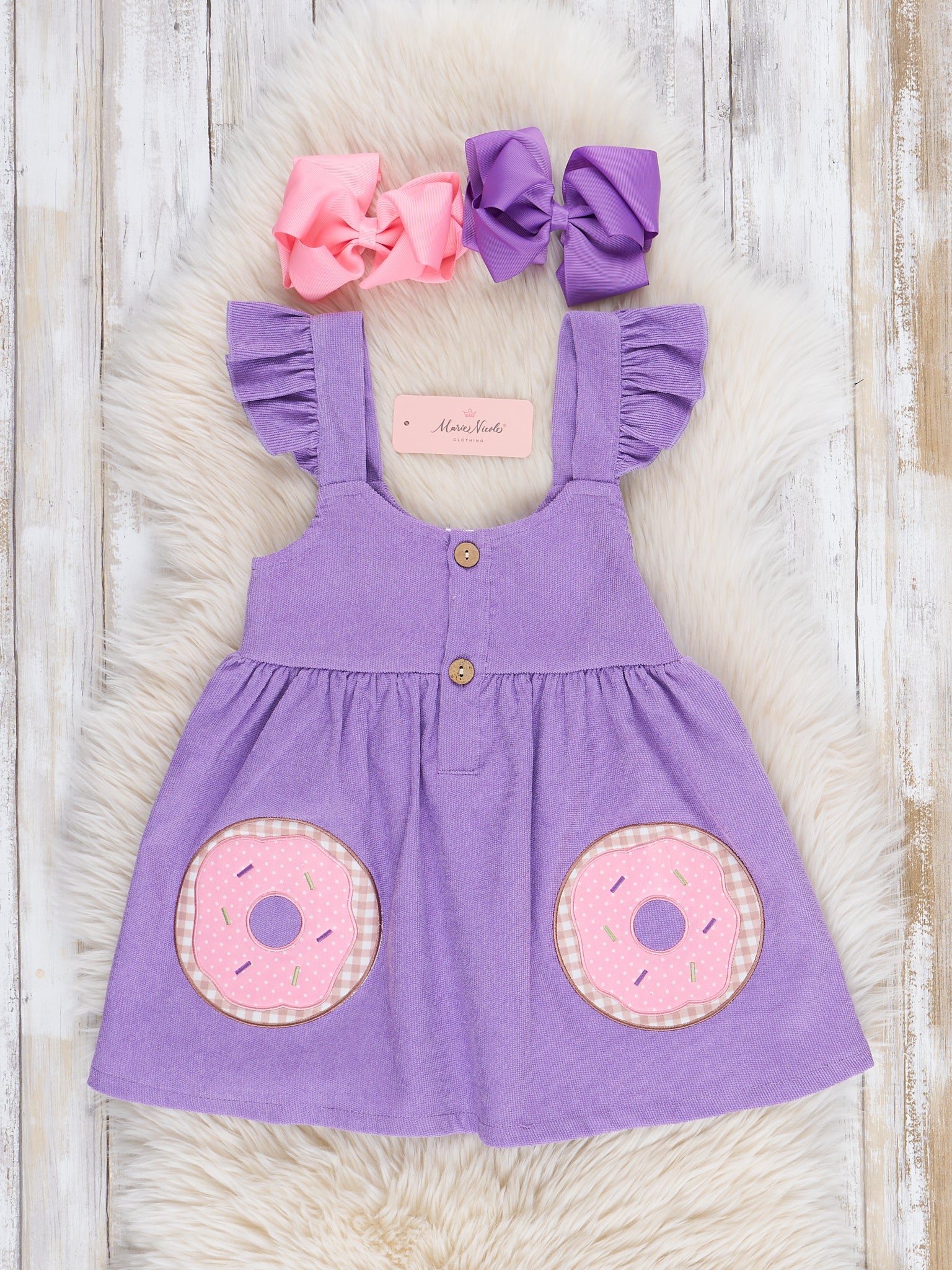 Get your little lady ready for a sweet day out with this adorable Purple Donuts Ruffle Skirtall Set. The ruffle skirtall features a playful donut pocket detail, while the pink peter pan collar shirt adds a touch of charm. Perfect for playdates or family outings, this girls outfit is as sweet as can be.