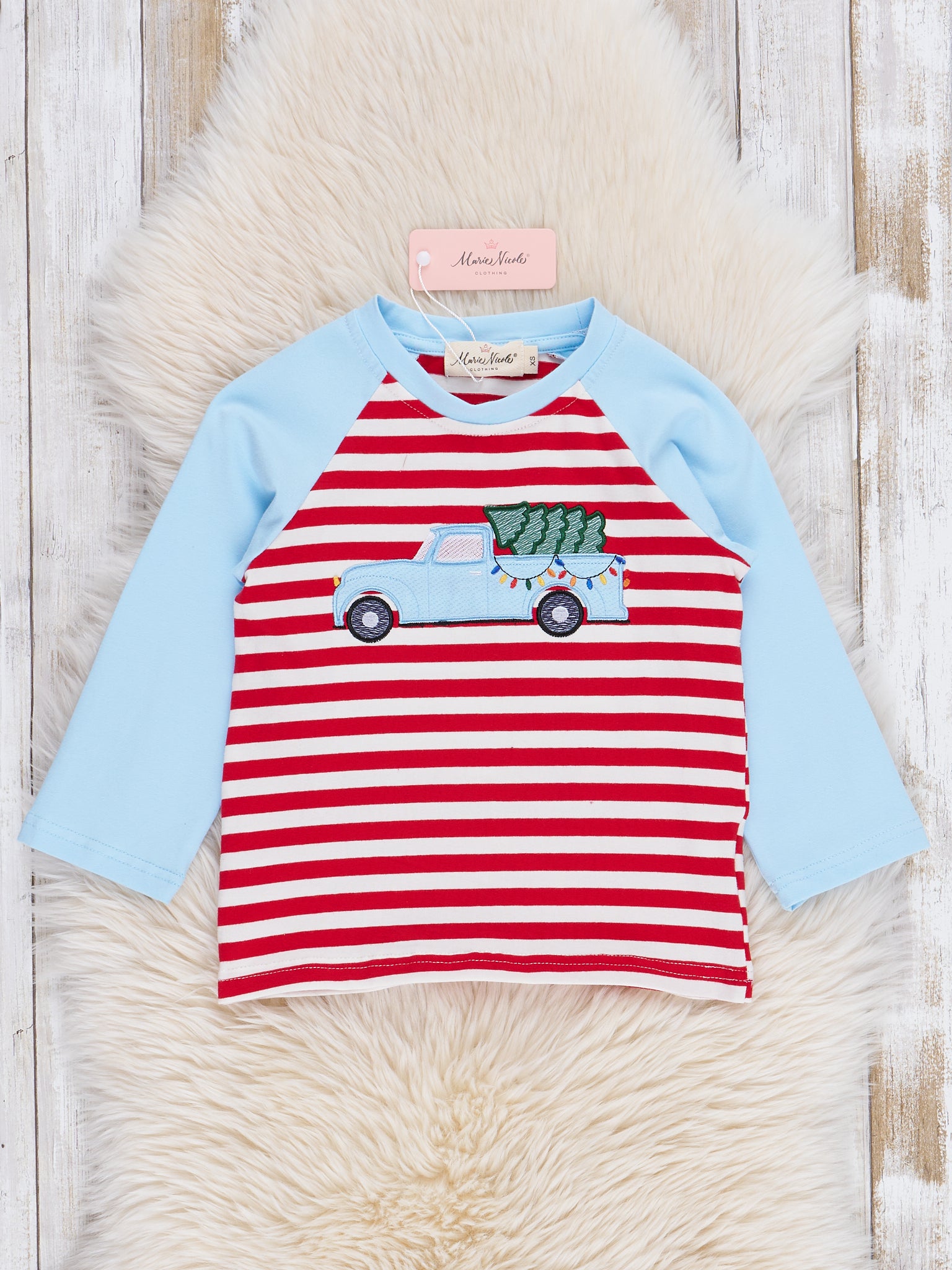 Ice Blue & Red Striped Fresh Cut Tree Shirt
