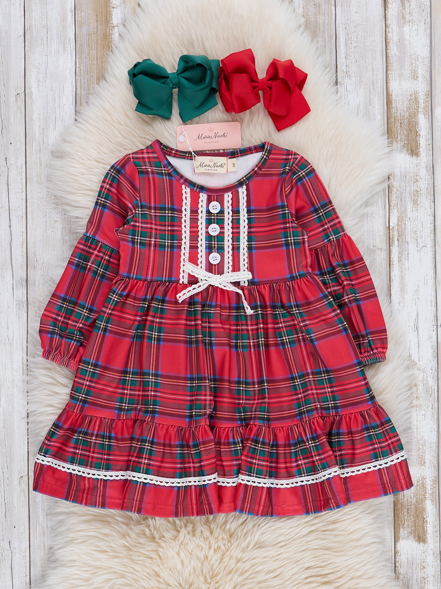 Teal Dots & Pink Plaid Santa Ruffle Dress