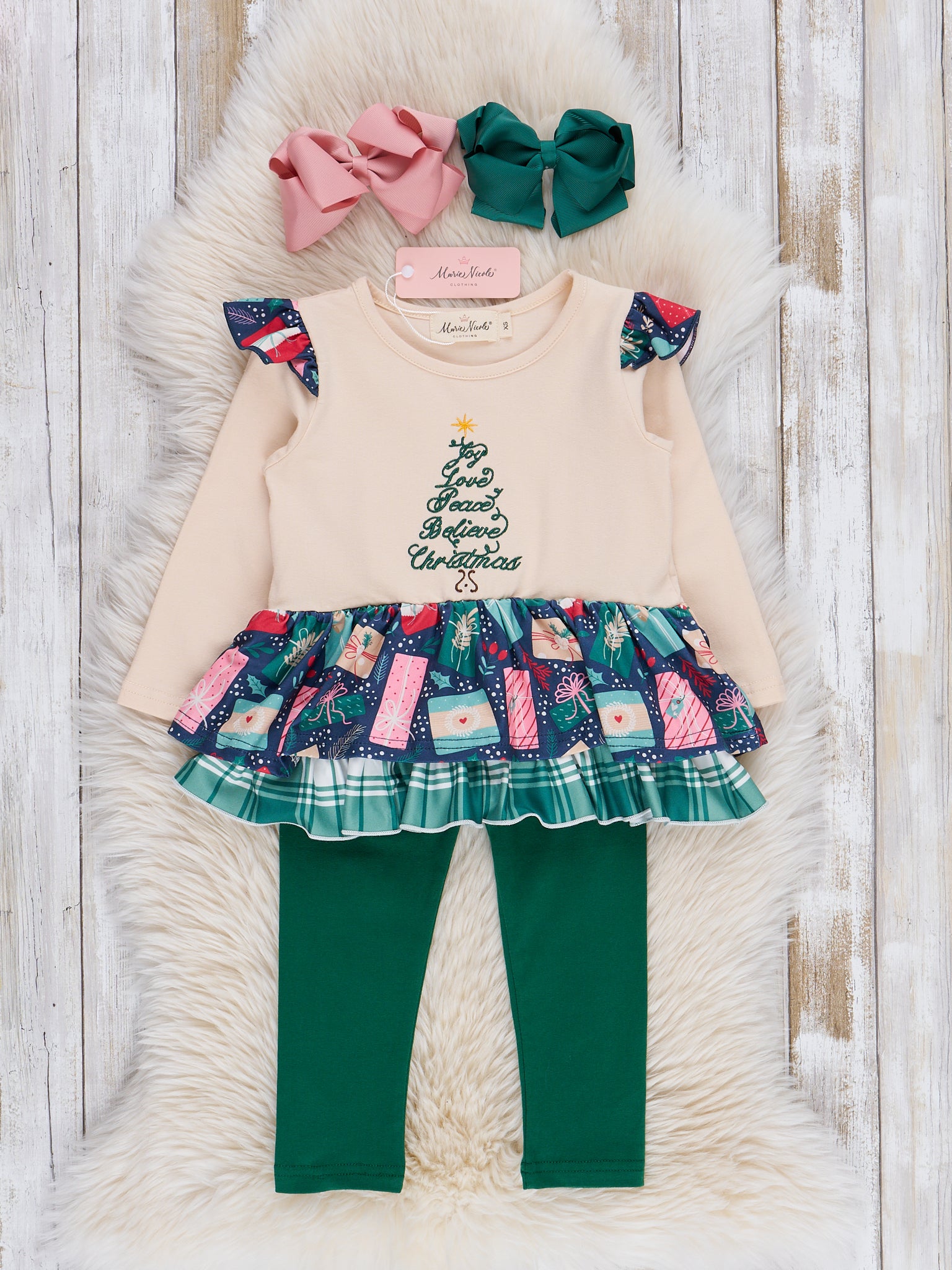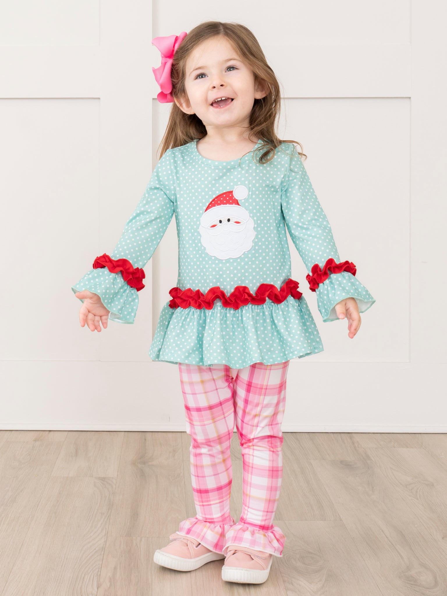 Teal Dots & Pink Plaid Santa Ruffle Outfit