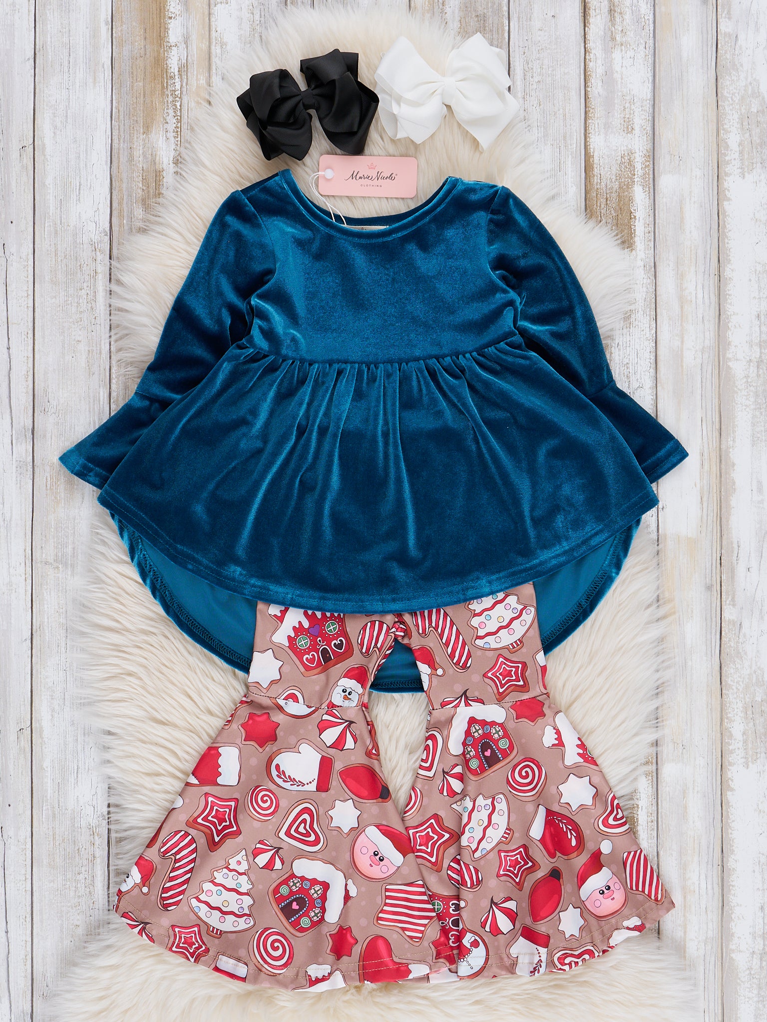 Teal Velvet Gingerbread Cookies Bell Bottoms Outfit