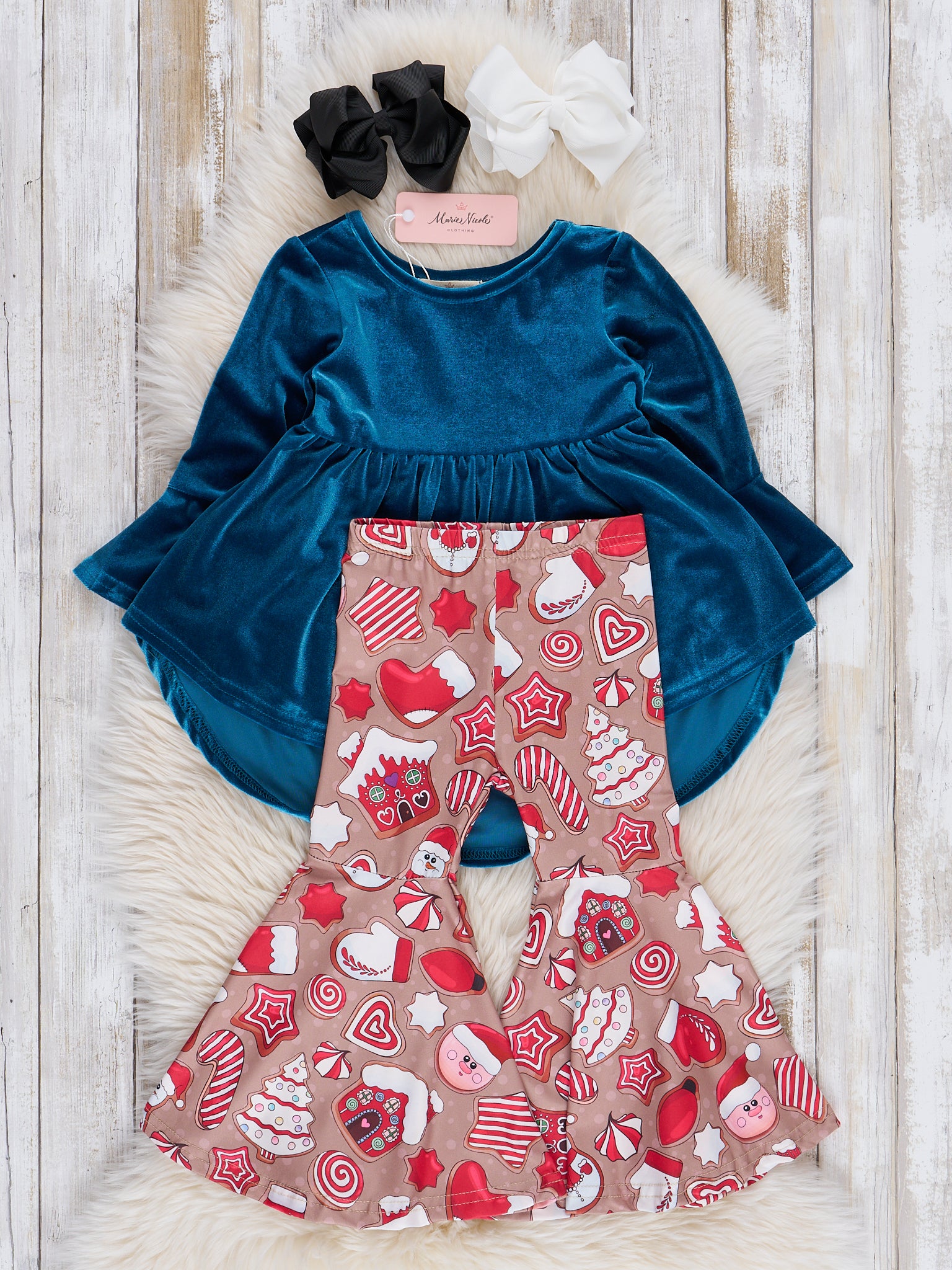 Teal Velvet Gingerbread Cookies Bell Bottoms Outfit