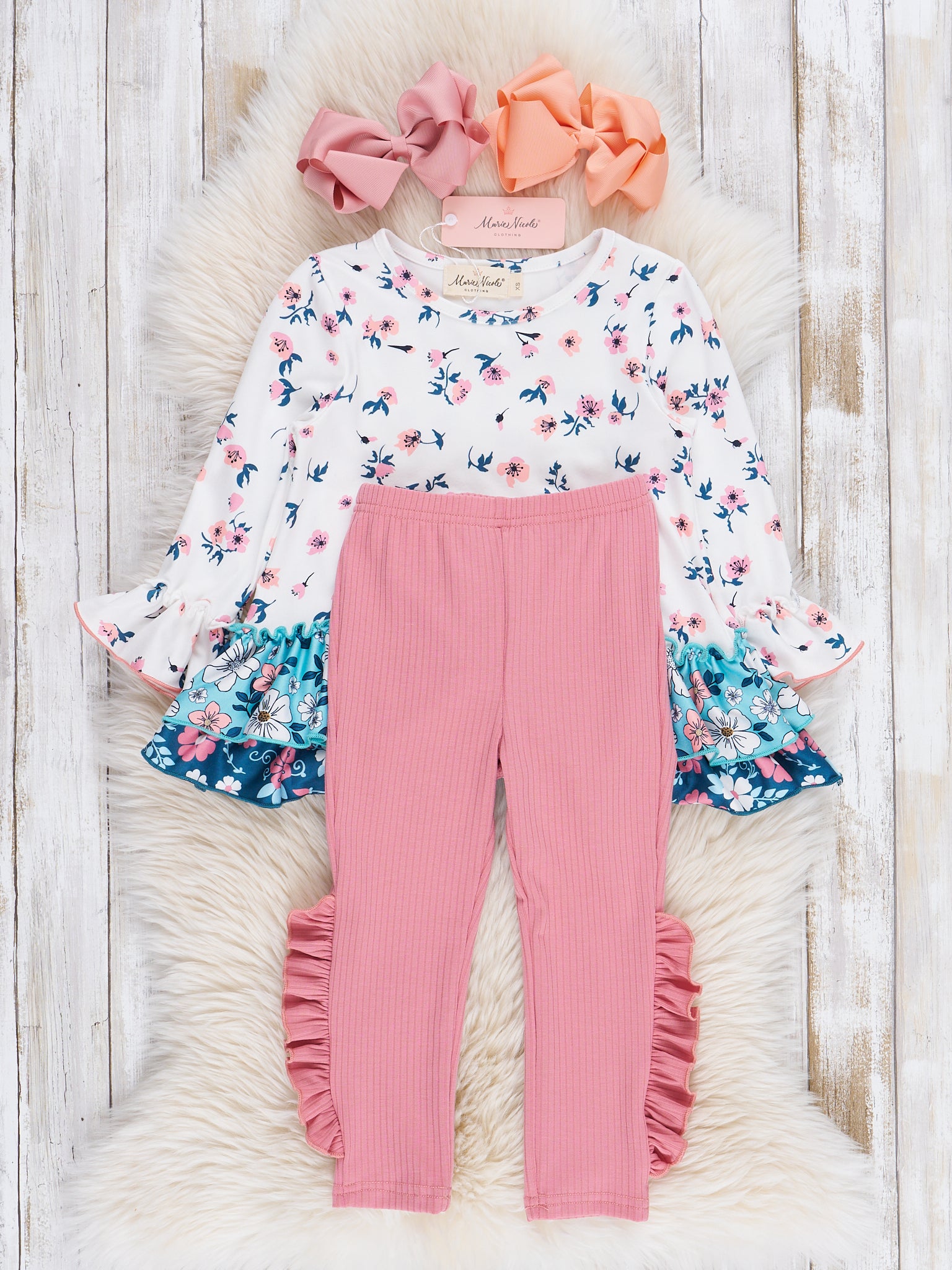 Pink & Blue Ditsy Floral Ruffle Outfit