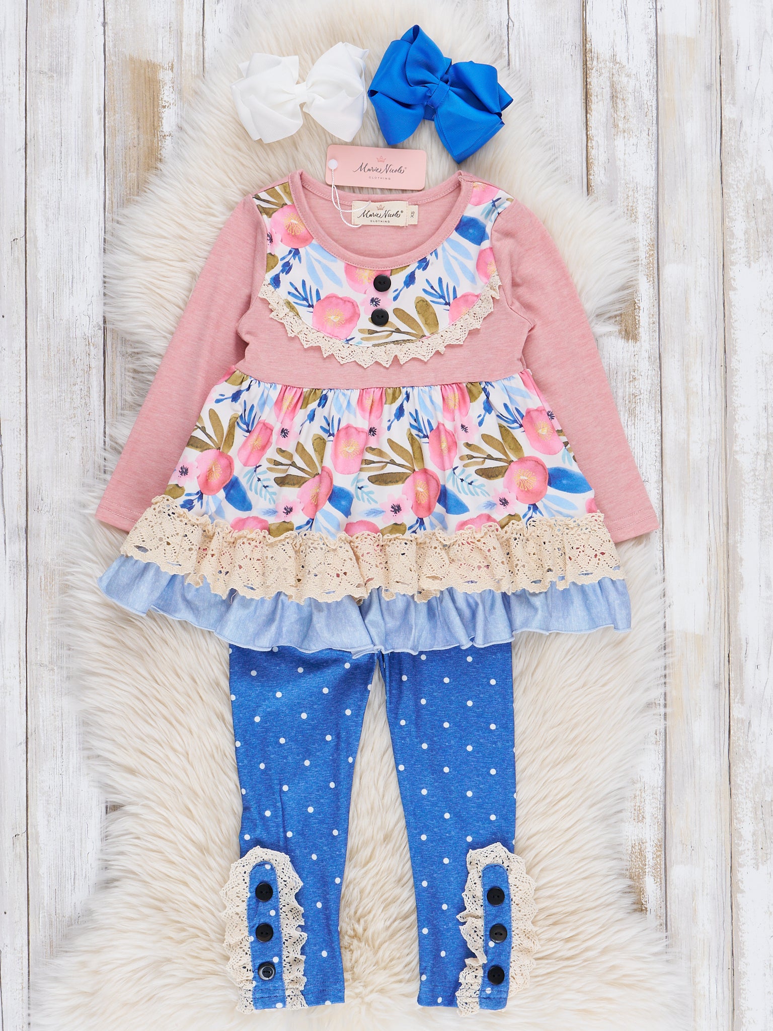 Blue Dots & Pink Florals Ruffle Outfit