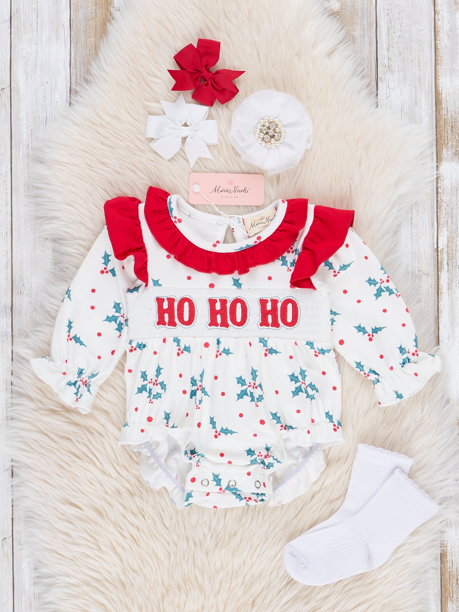 Red & Green Smocked "Ho Ho Ho" Ruffle Bubble