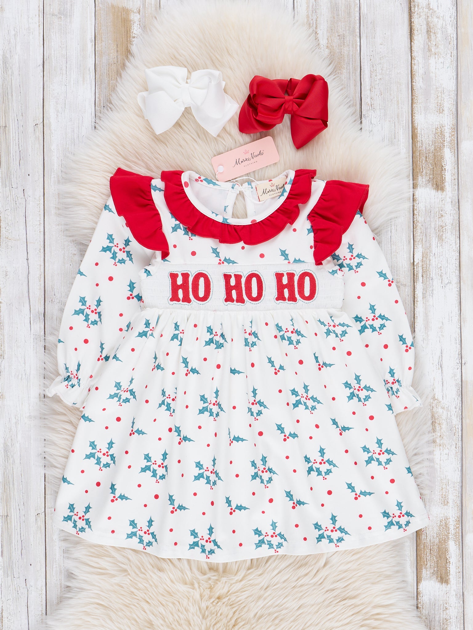 Red & Green Smocked "Ho Ho Ho" Ruffle Outfit