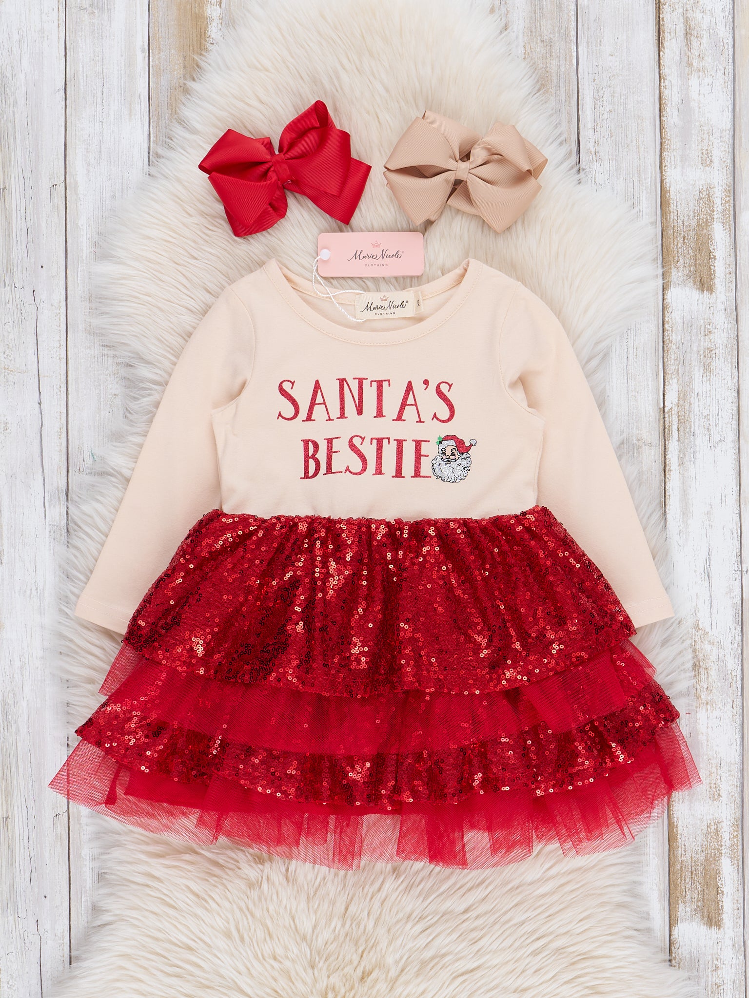 Silver Sequins & Red Velvet Christmas Outfit w/ Skirt