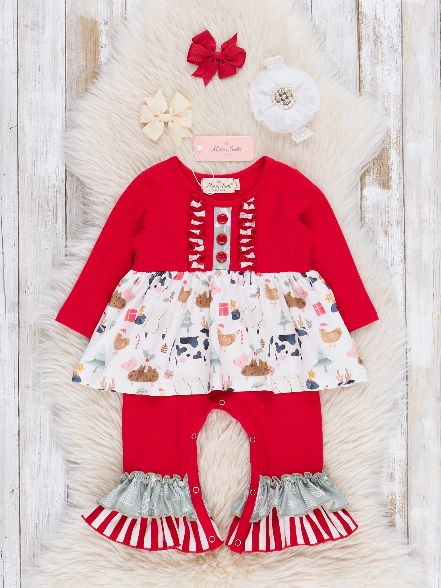 Chambray Embroidered Christmas Tree Ruffle Bubble