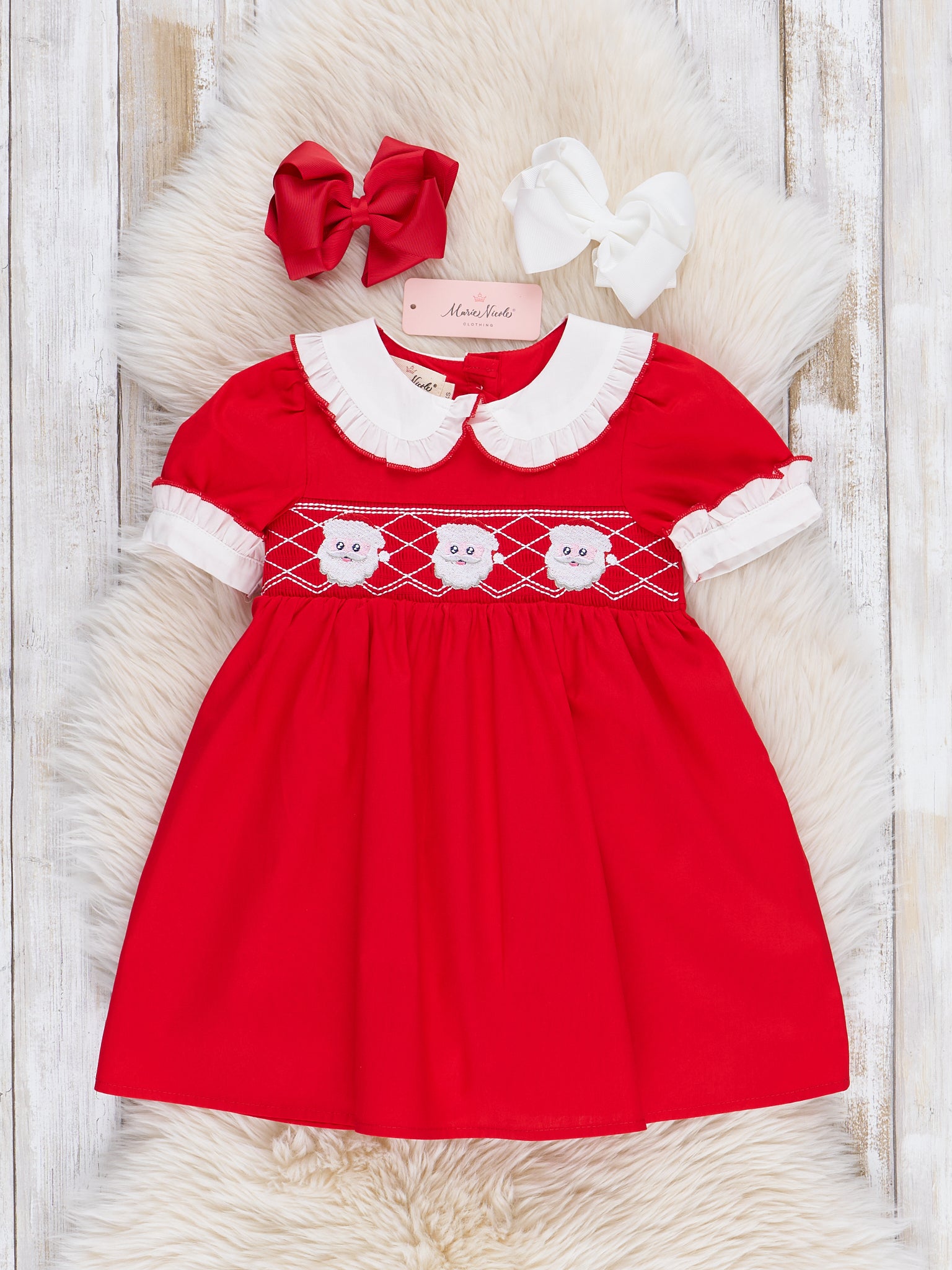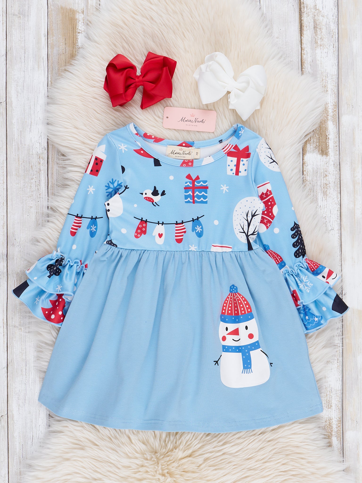 Chambray Embroidered Christmas Tree Ruffle Dress