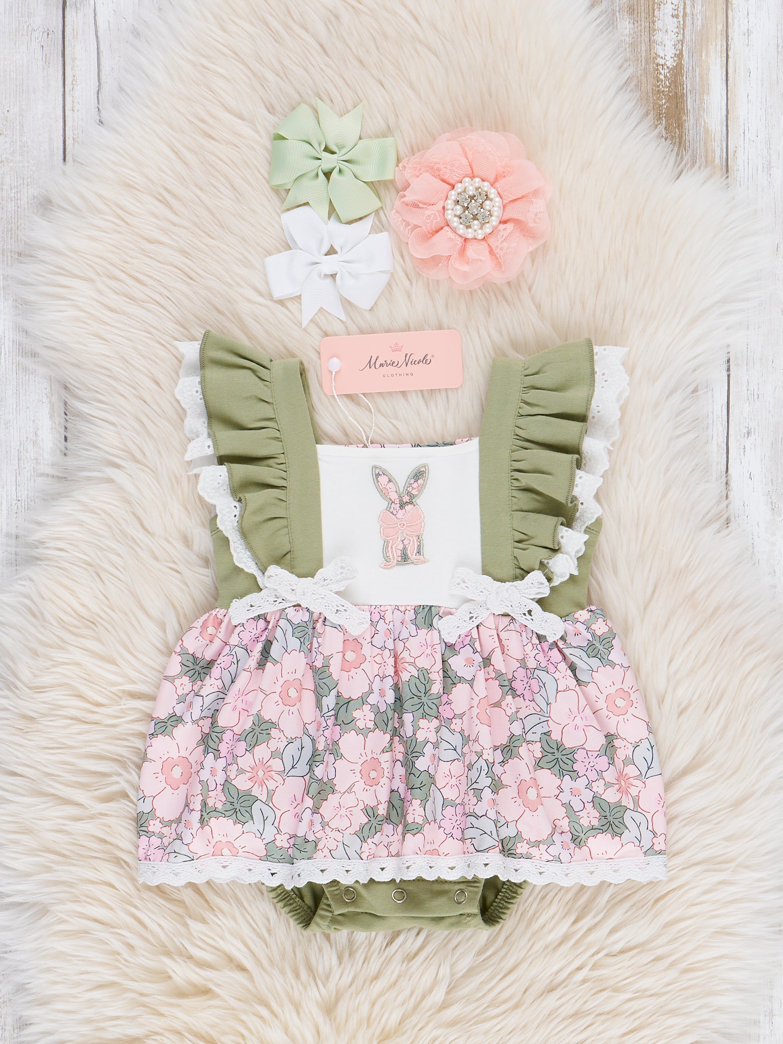 Embroidered Floral Bunny Ruffle Bubble