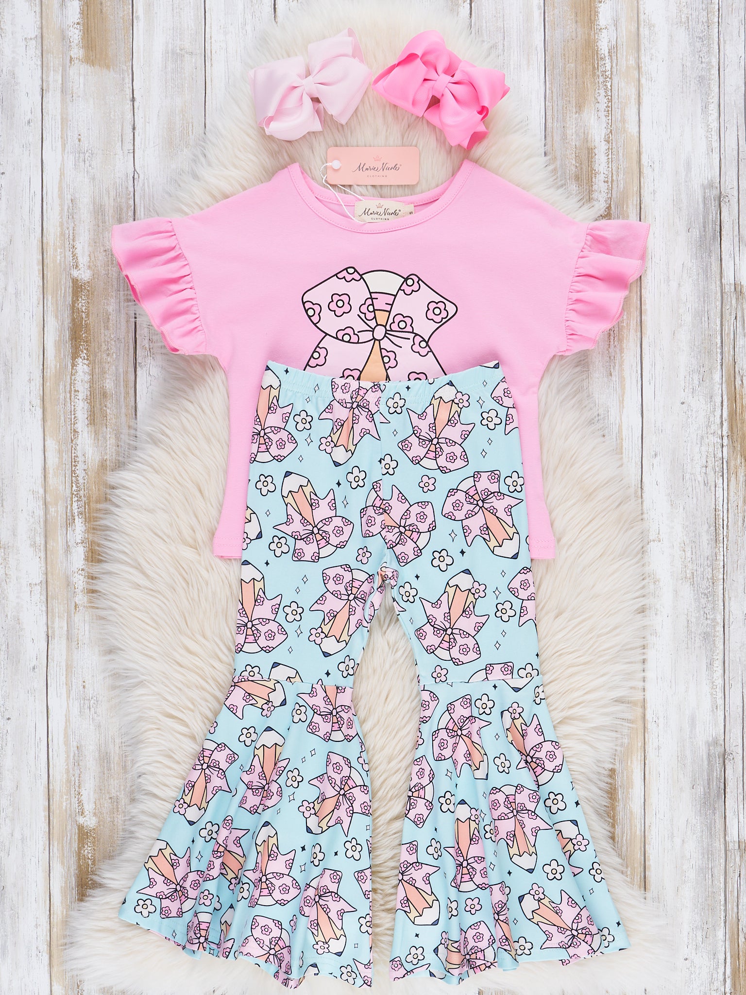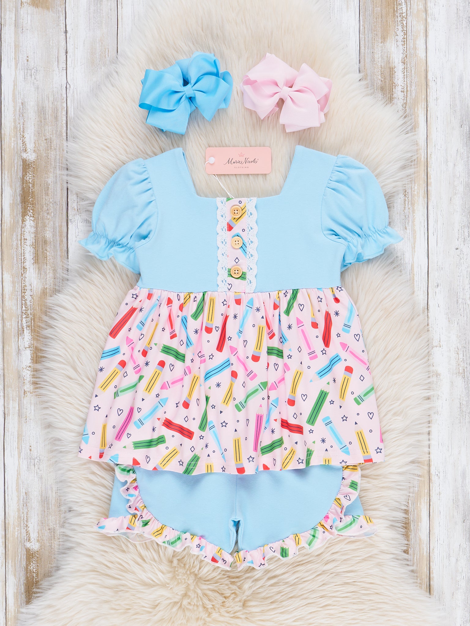 Striped Embroidered Apples Pencils & Ruffle Outfit