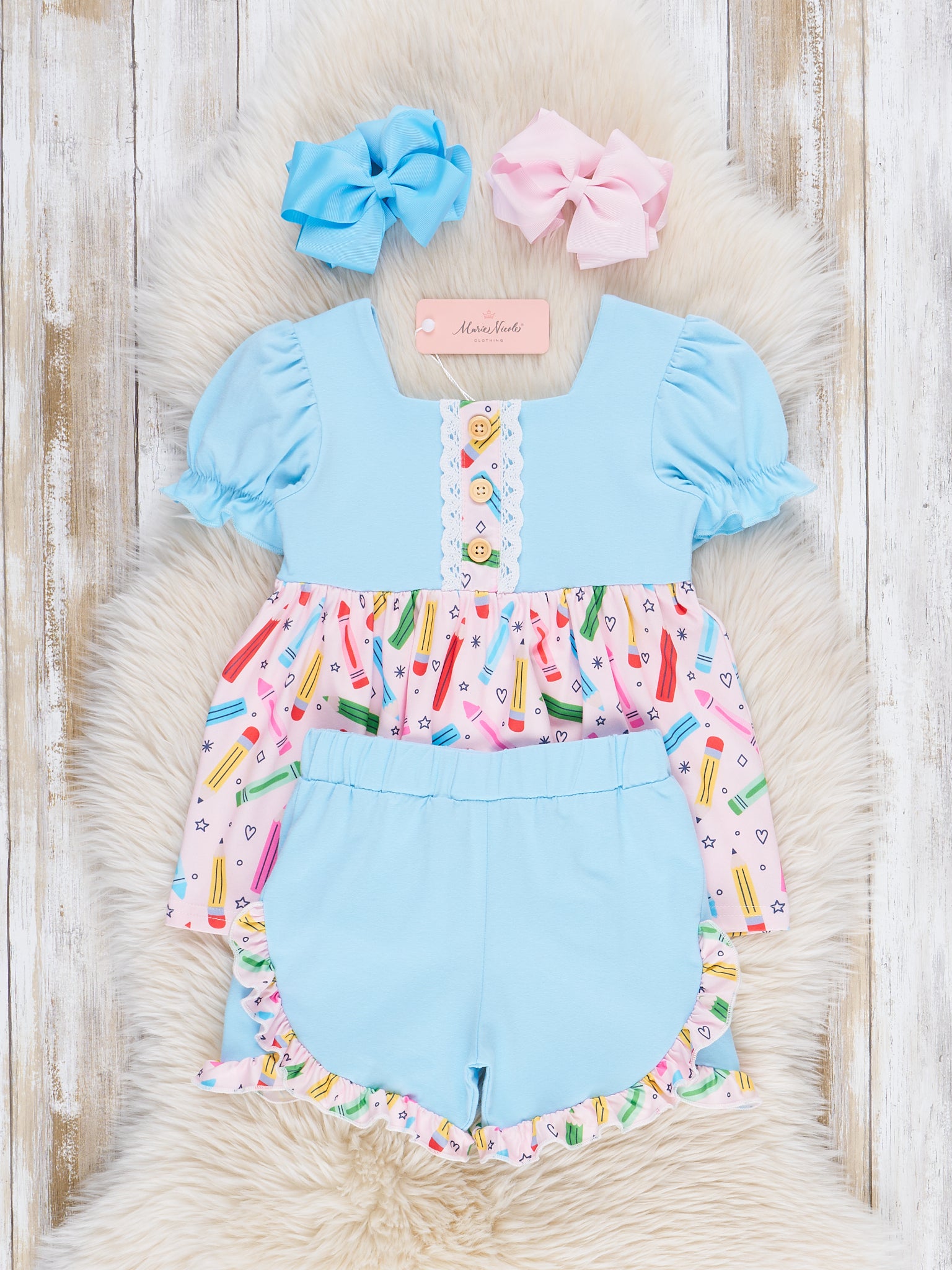 Bright Crayons Embroidered Gingham Ruffle Outfit