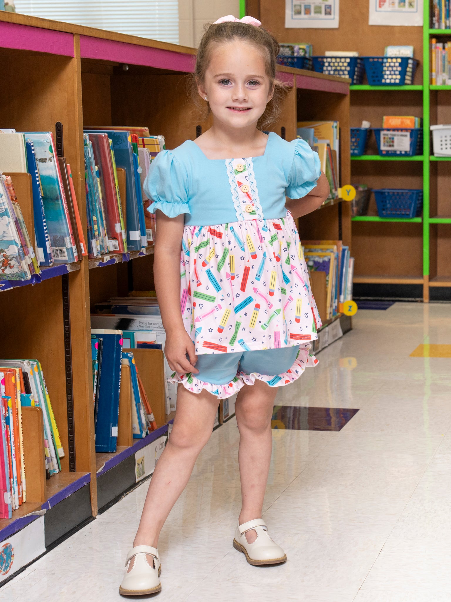 Bring the color and fun of art class to life with the Crayon Party Ruffle Outfit! Featuring a vibrant crayon print and sweet ruffle accents, this playful two-piece set from Marie Nicole Clothing is perfect for creative little ones. Ideal for playdates, school days, or a creative day at home, this outfit is sure to be a colorful favorite!