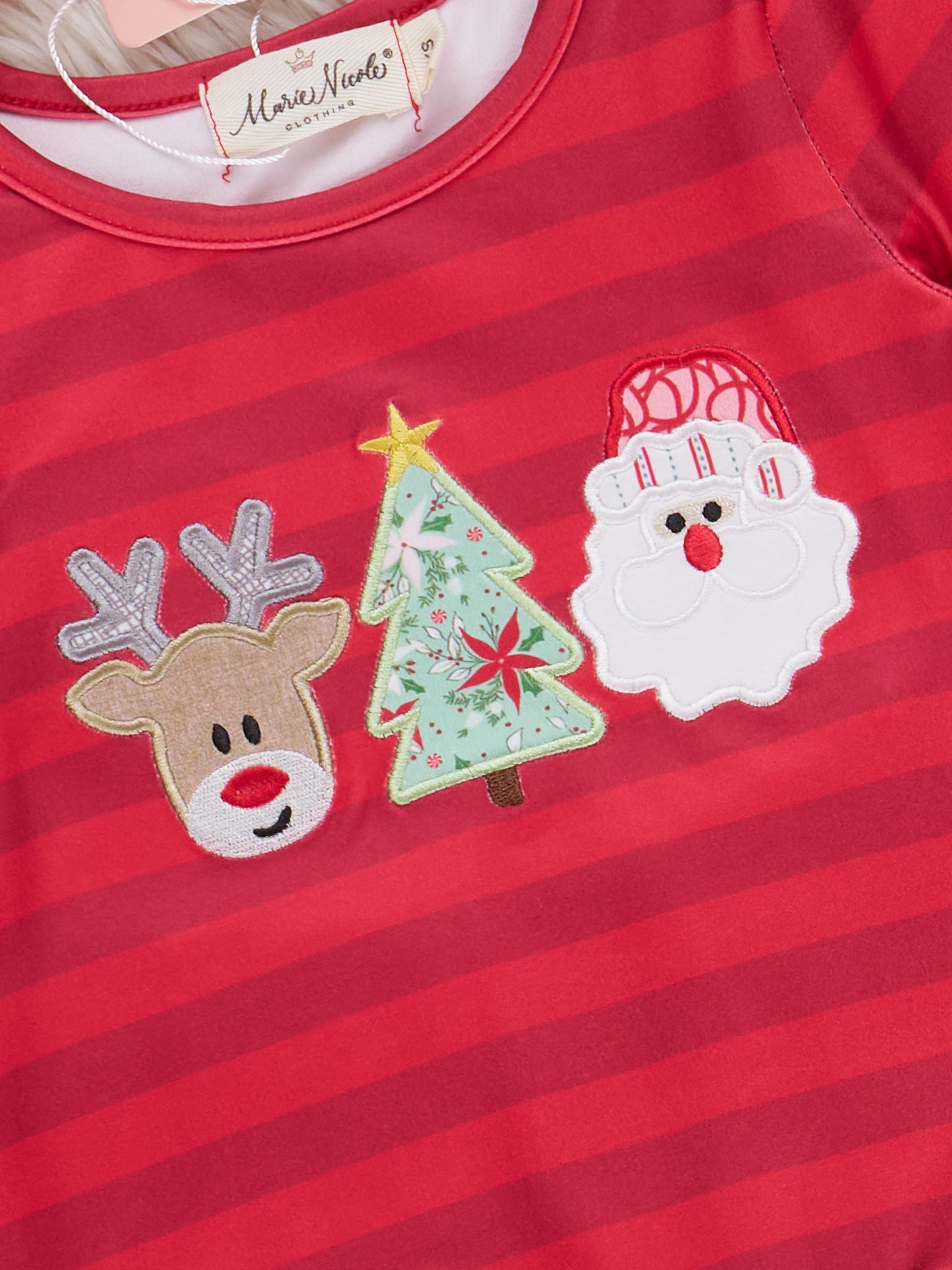Christmas Cheer Striped Embroidered Ruffle Romper