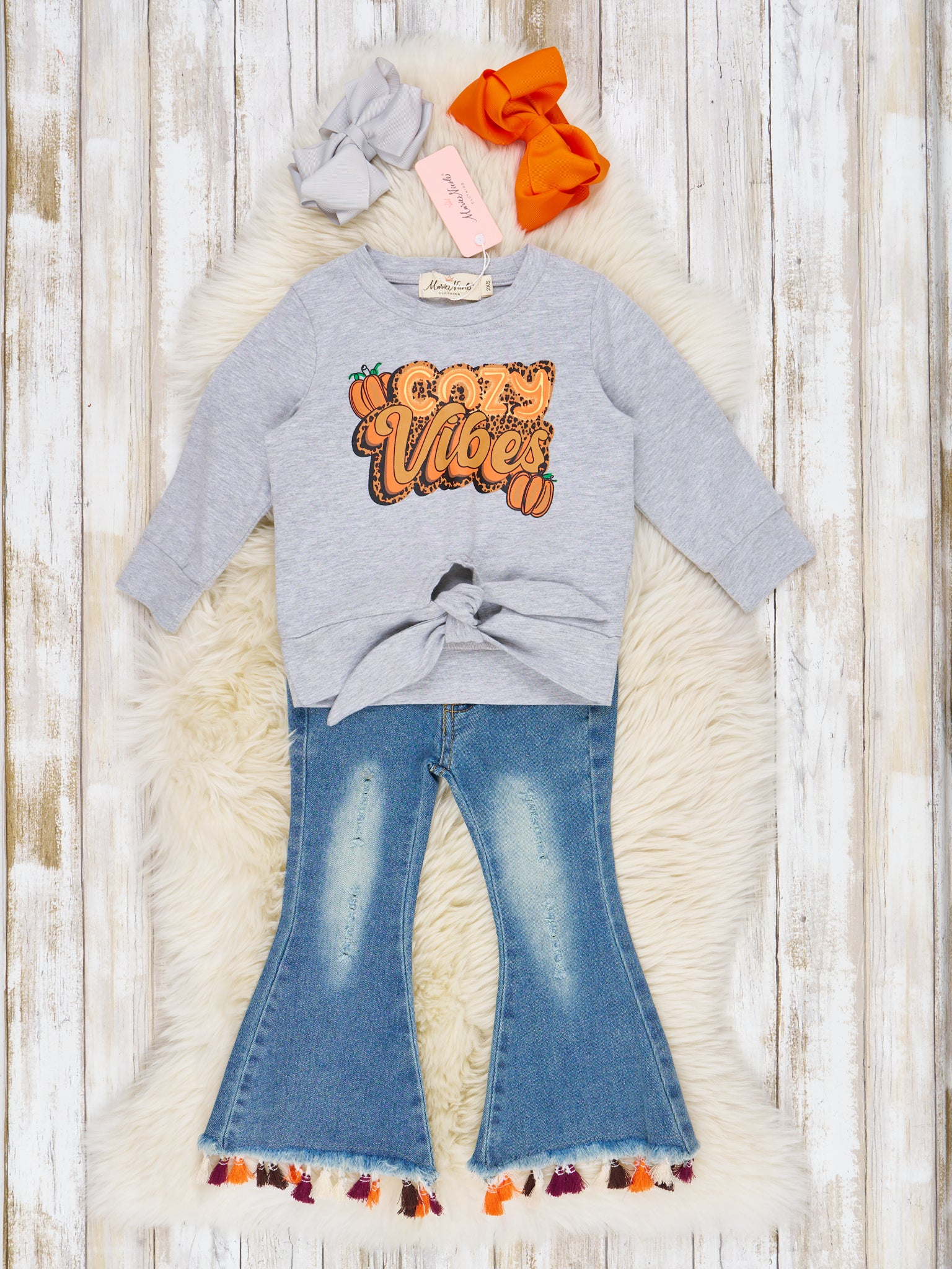 "Cozy Vibes" Tassel Bell Bottom Outfit