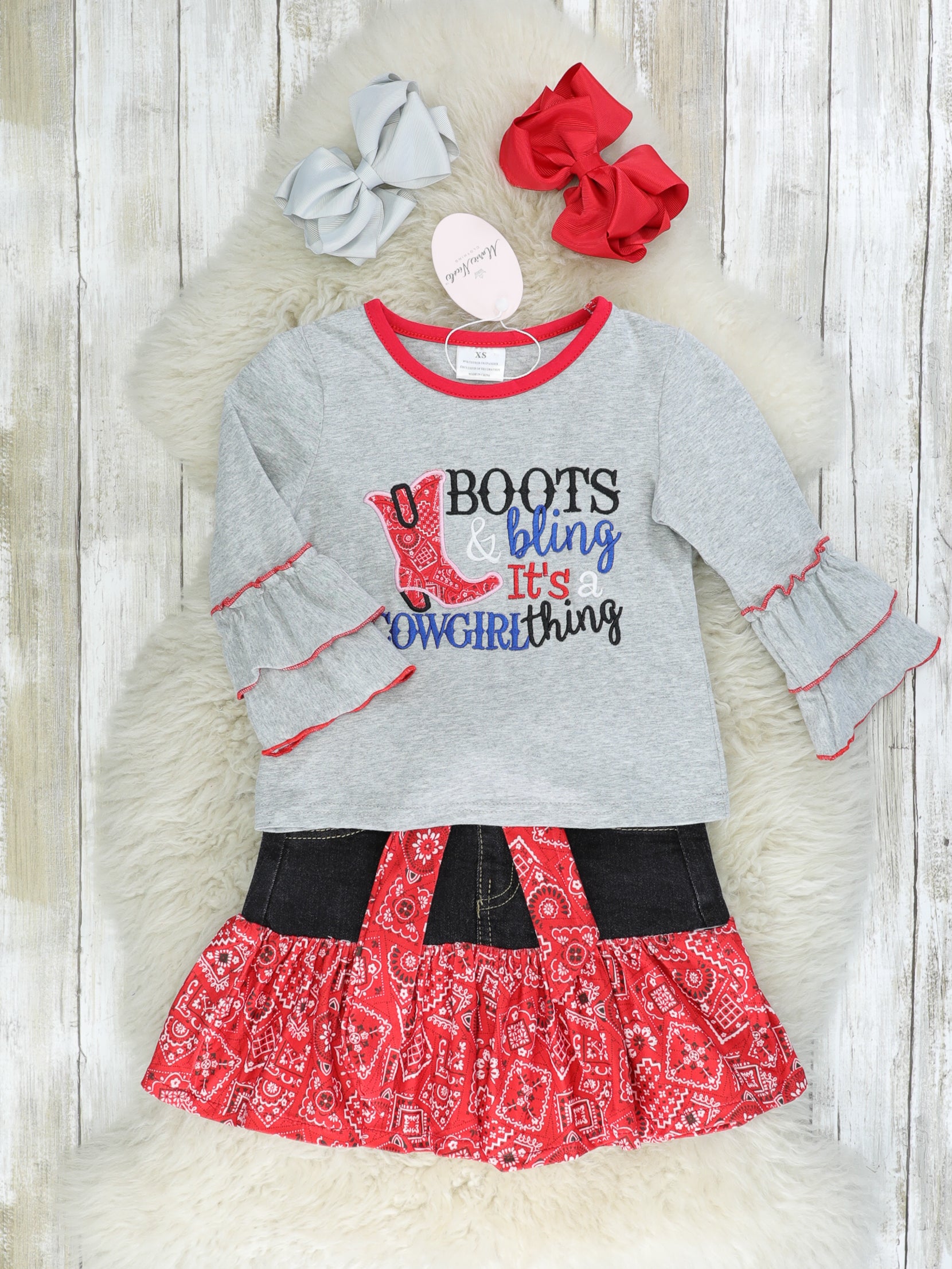 "Farm Girl" Hot Pink Bandana Sequin Bell Bottoms Outfit