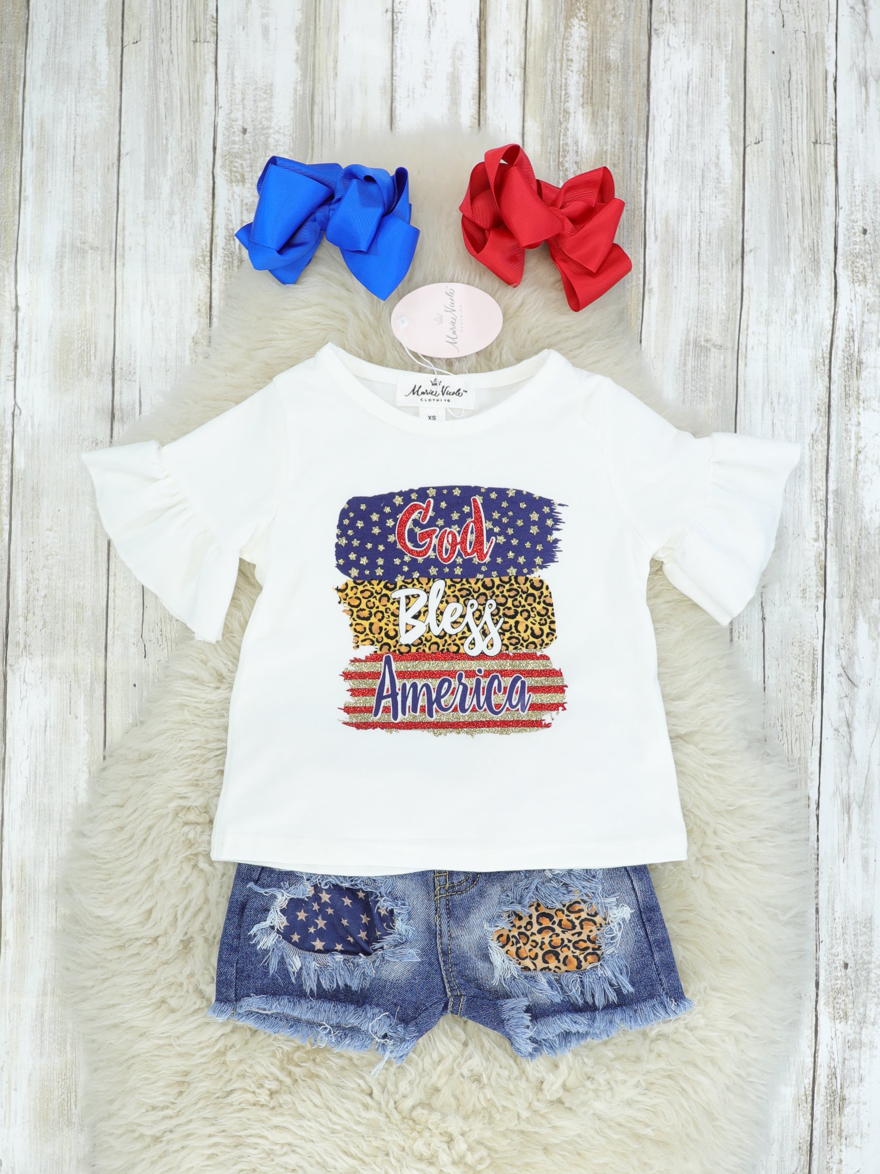 "God Bless America" Ruffle Top & Distressed Denim Outfit