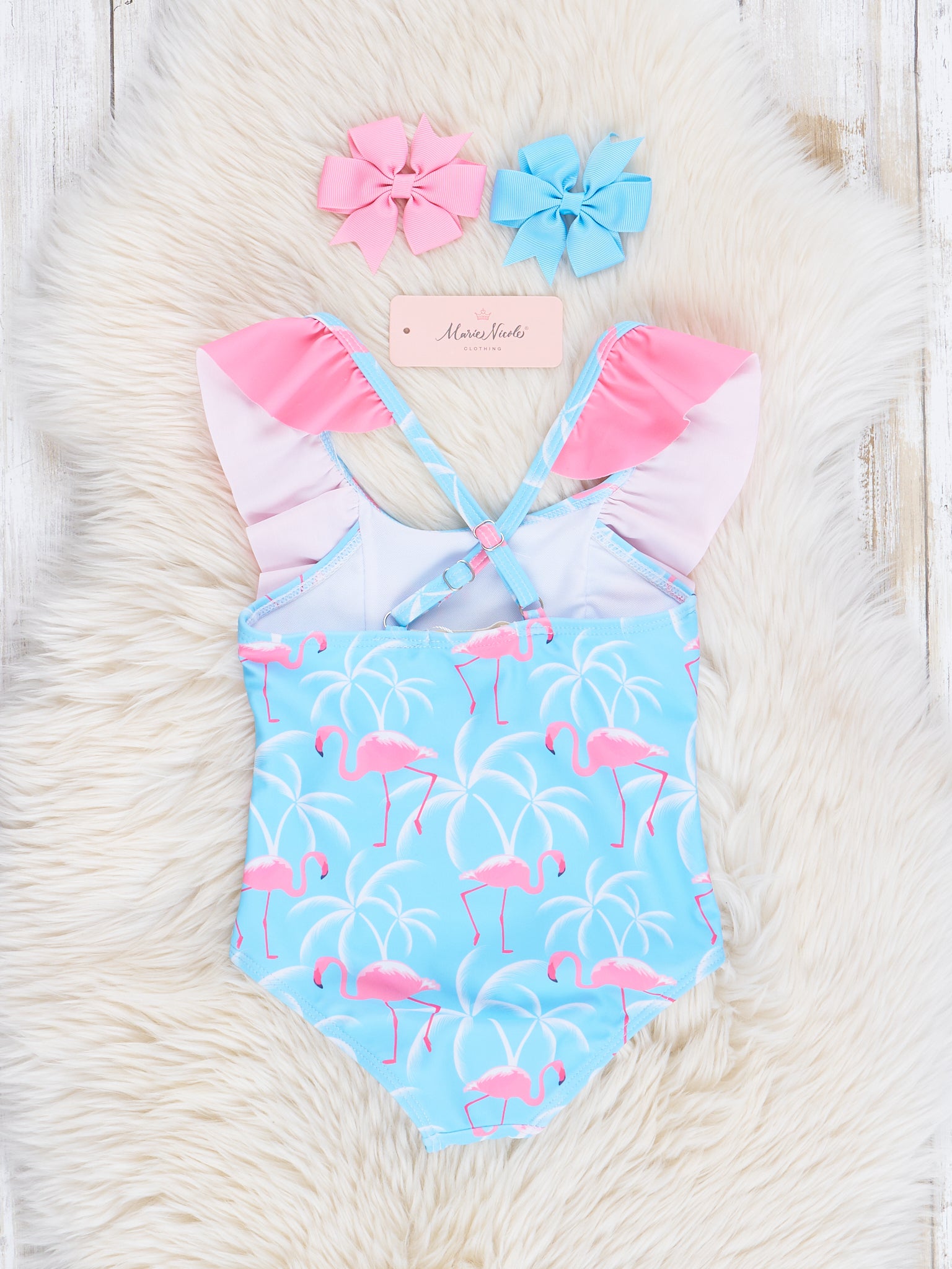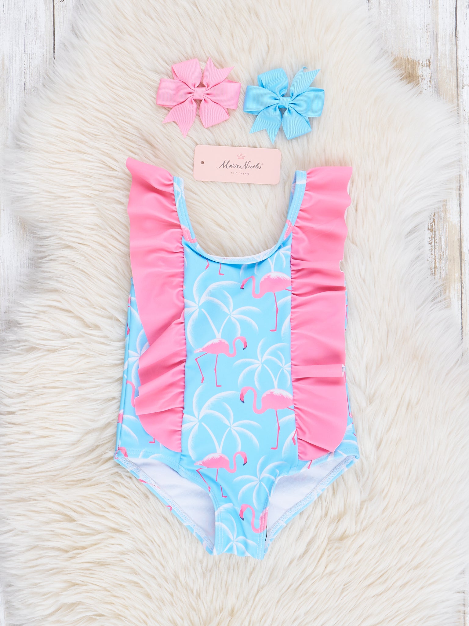 Magenta Gingham Dinosaur Pom Pom Swimsuit