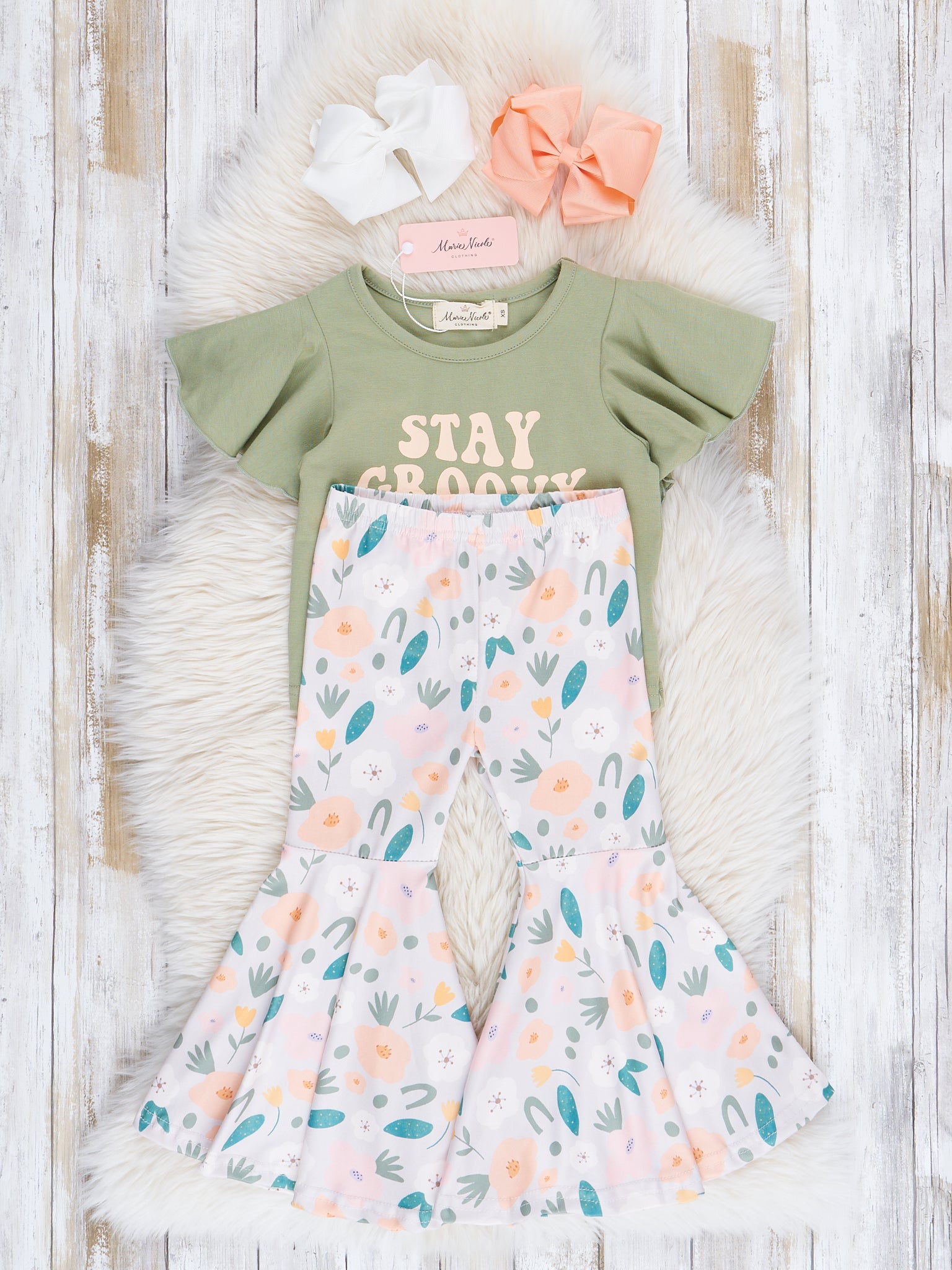 Yellow & Green Groovy Garden Bell Bottom Outfit