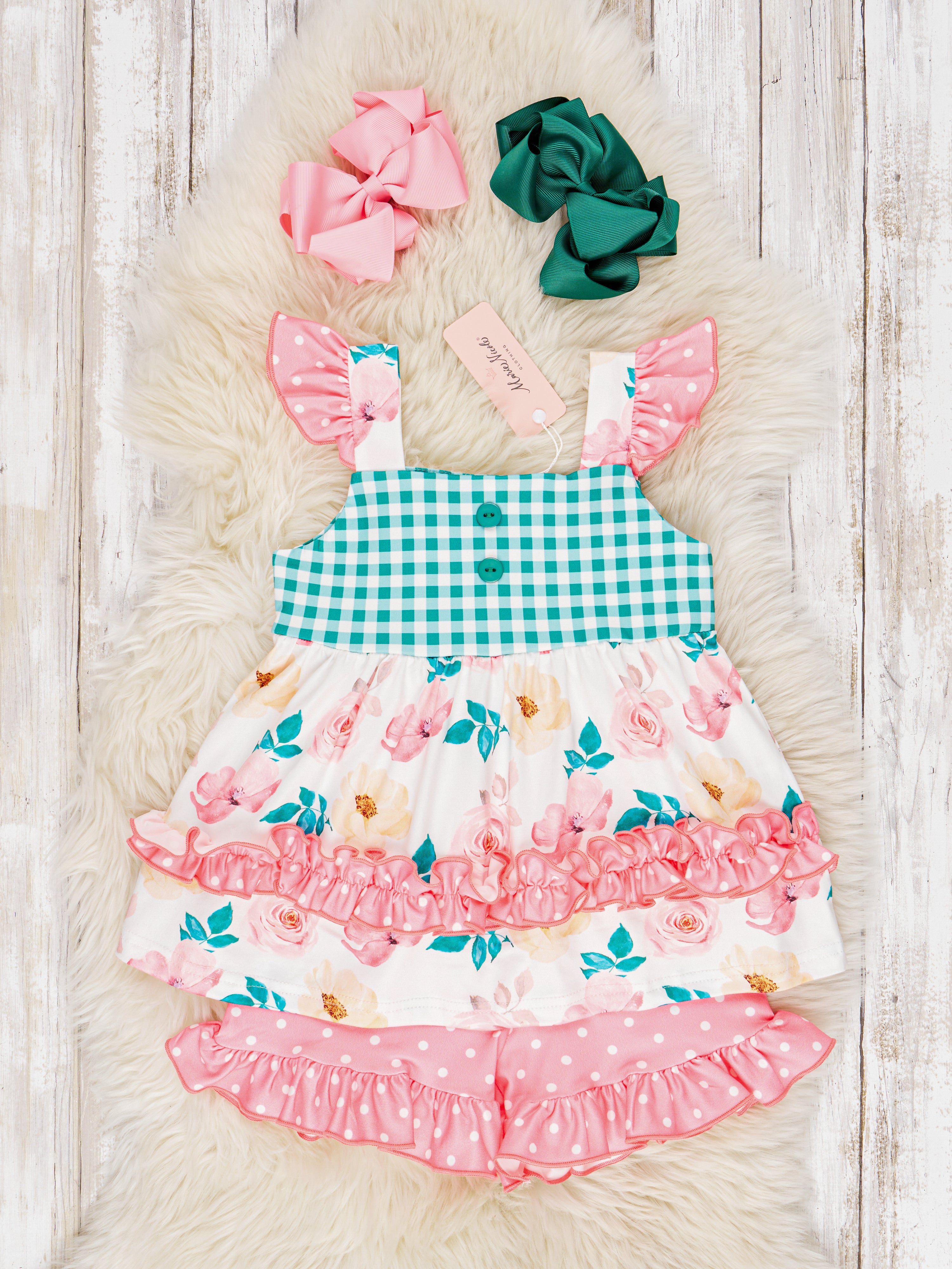 Floral Gingham Tank Ruffle Outfit
