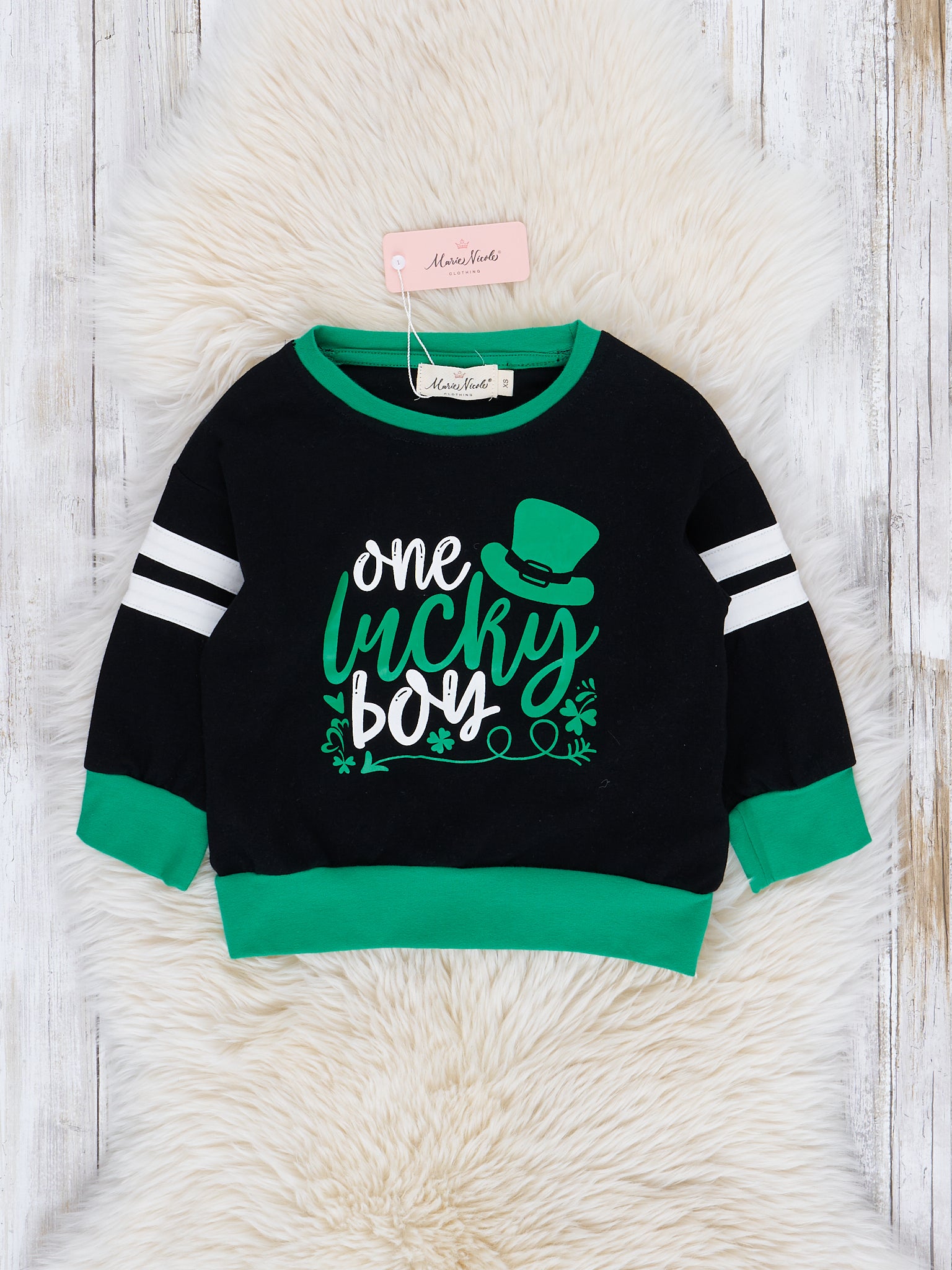 Let your little one show off his luck with this charming black "Lucky Boy" romper! This brother set comes with classic rugby stripes and lively green trim, perfect for celebrating St. Patrick's Day in style. Get him ready for a good time – don't be caught without this lucky number!