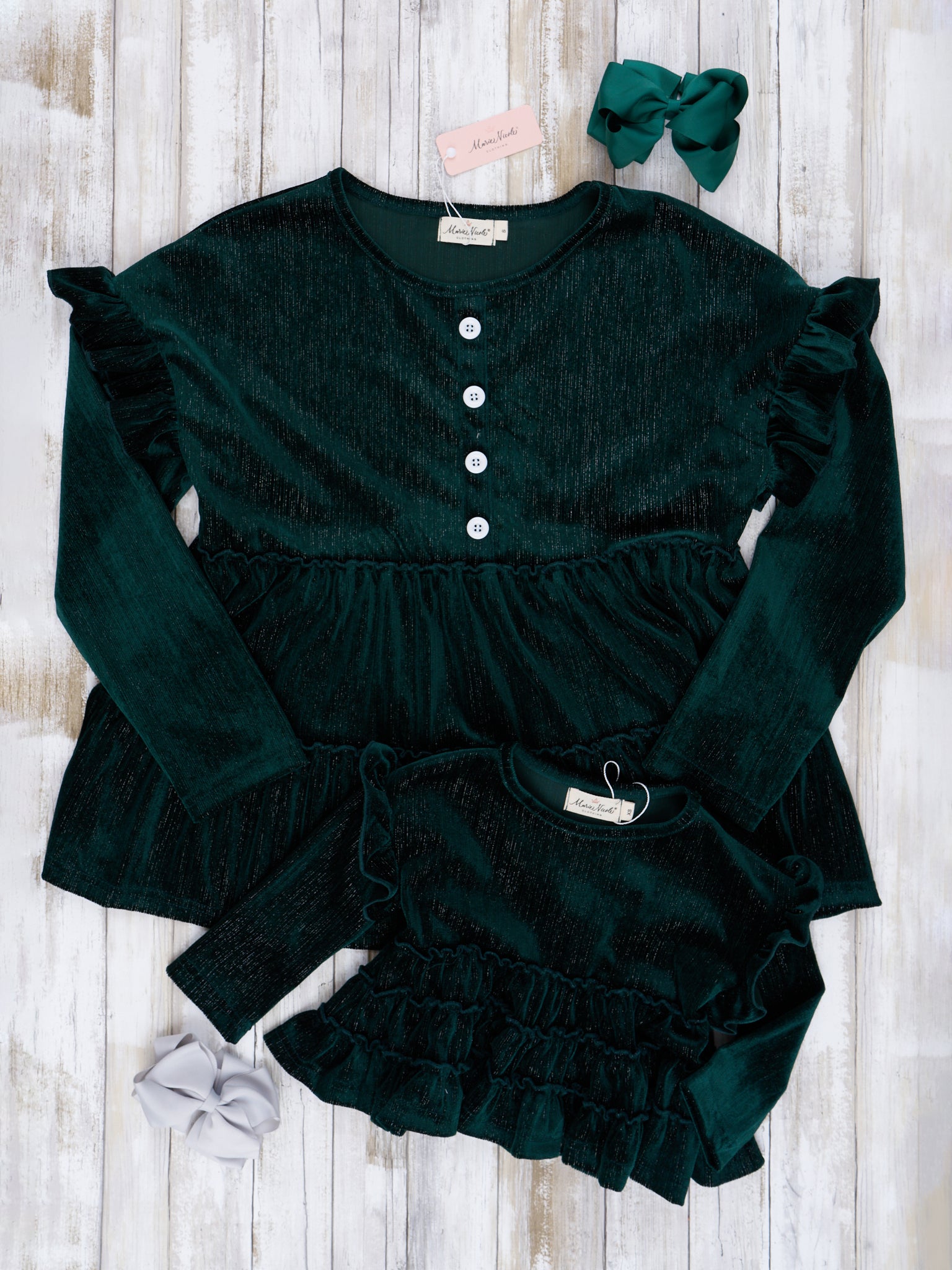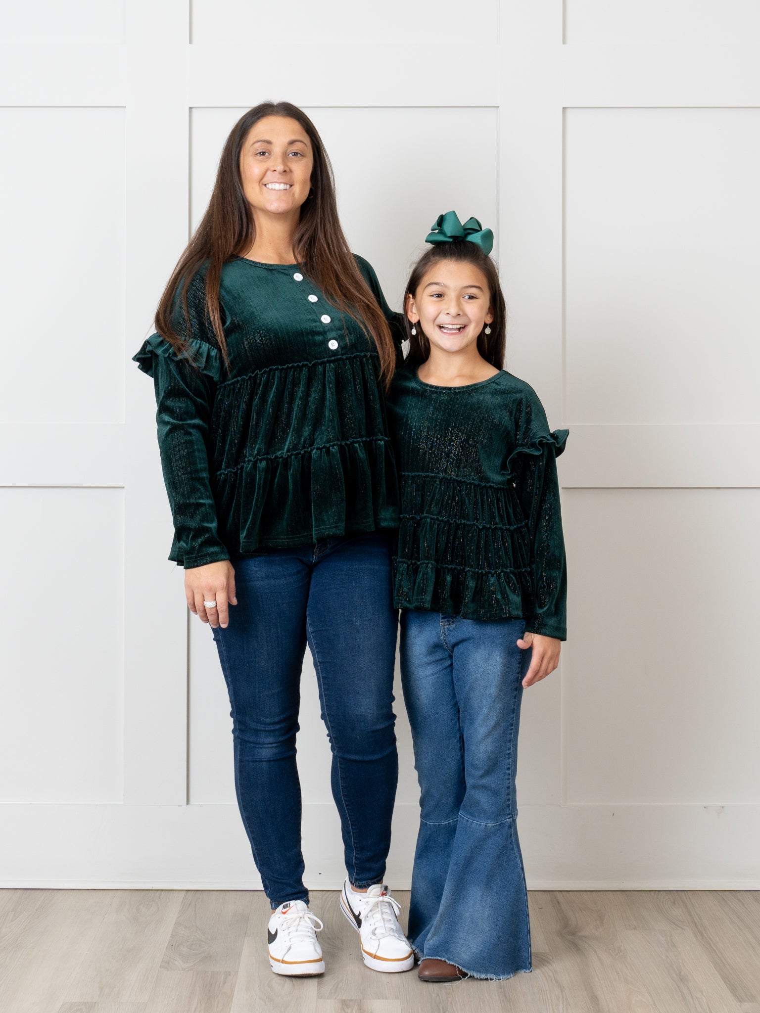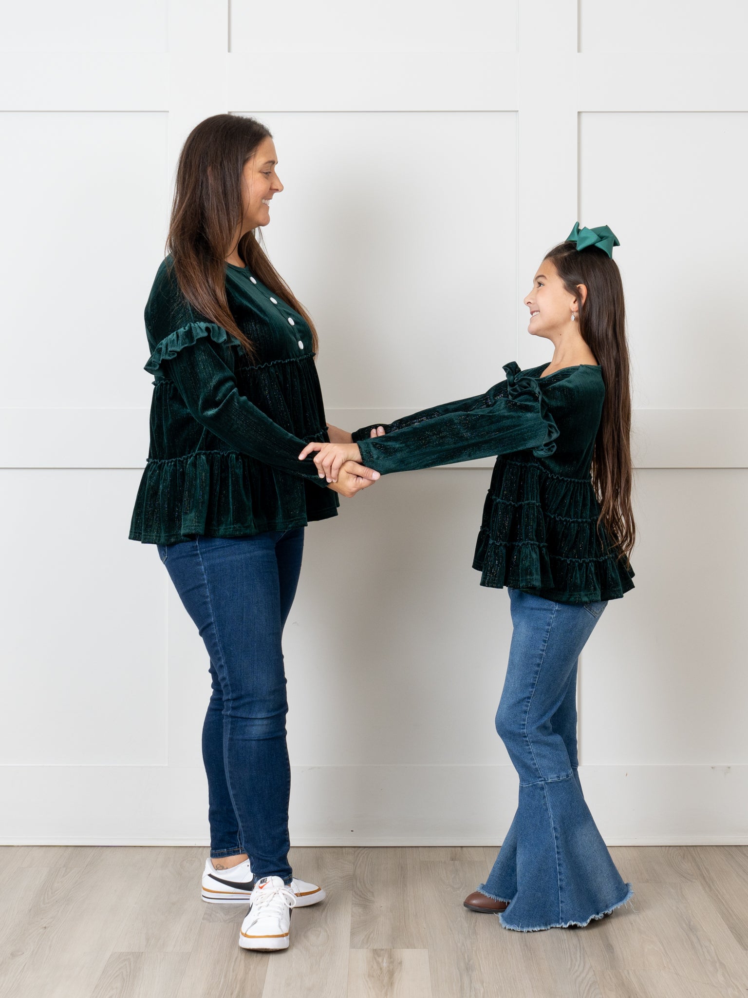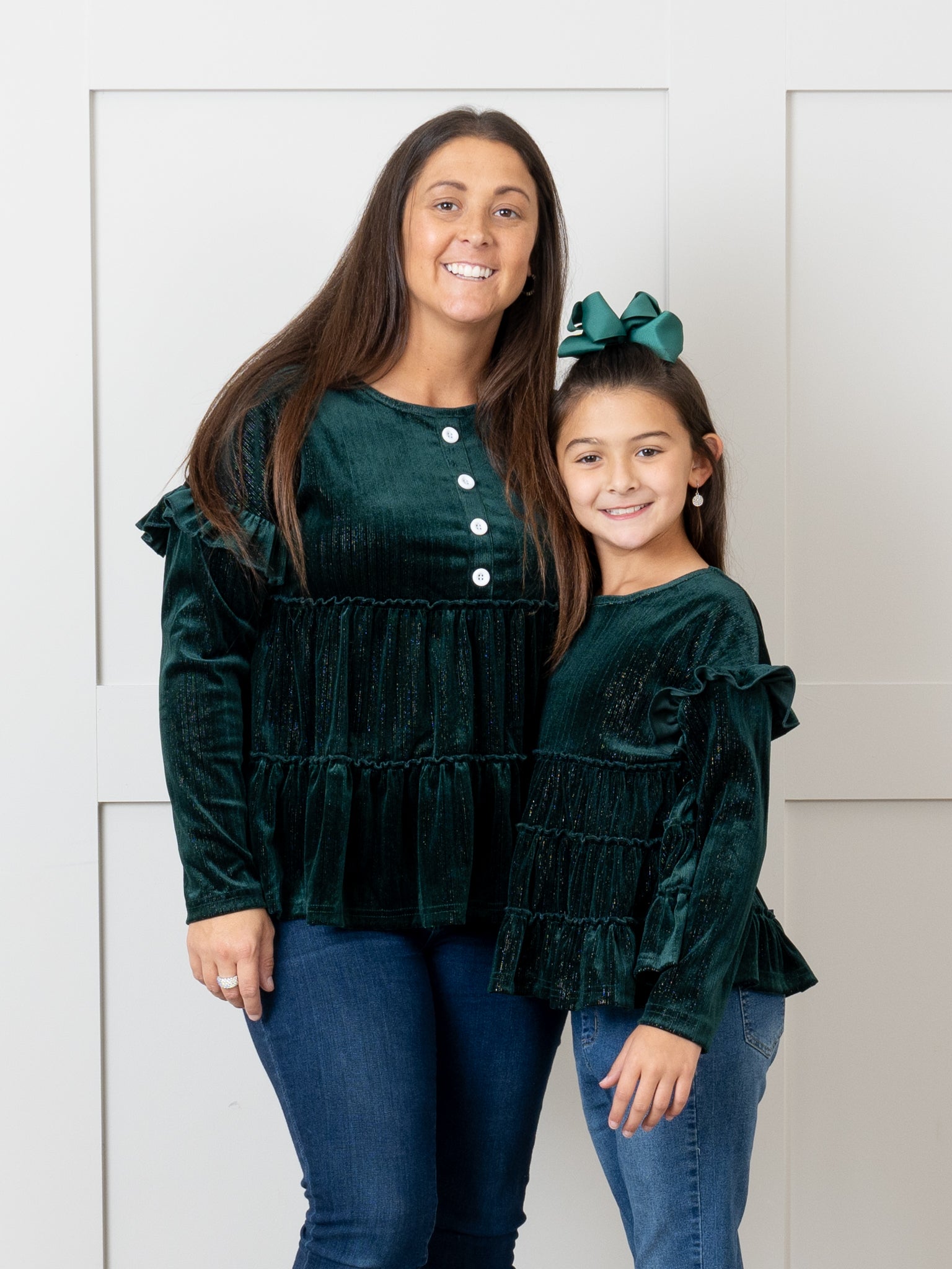 Deep Green Mom & Me Velvet Ruffle Shirt