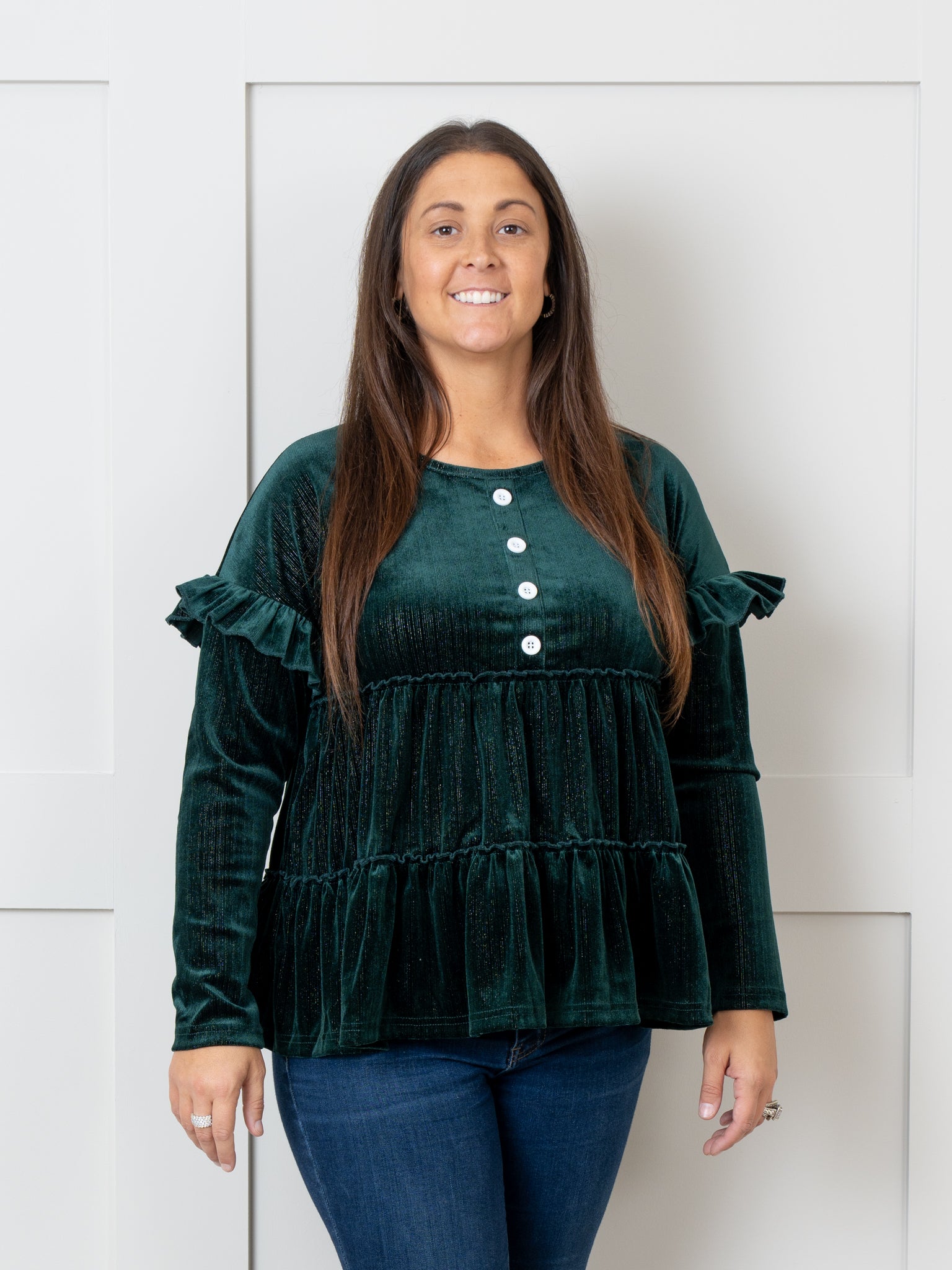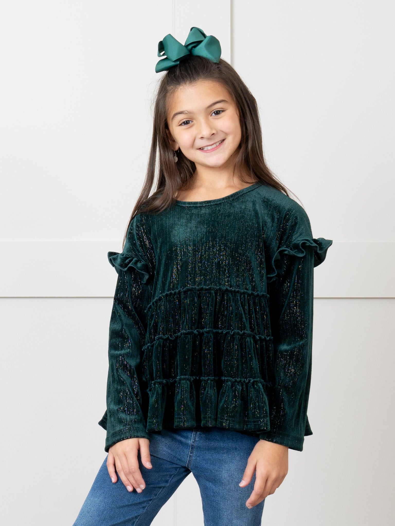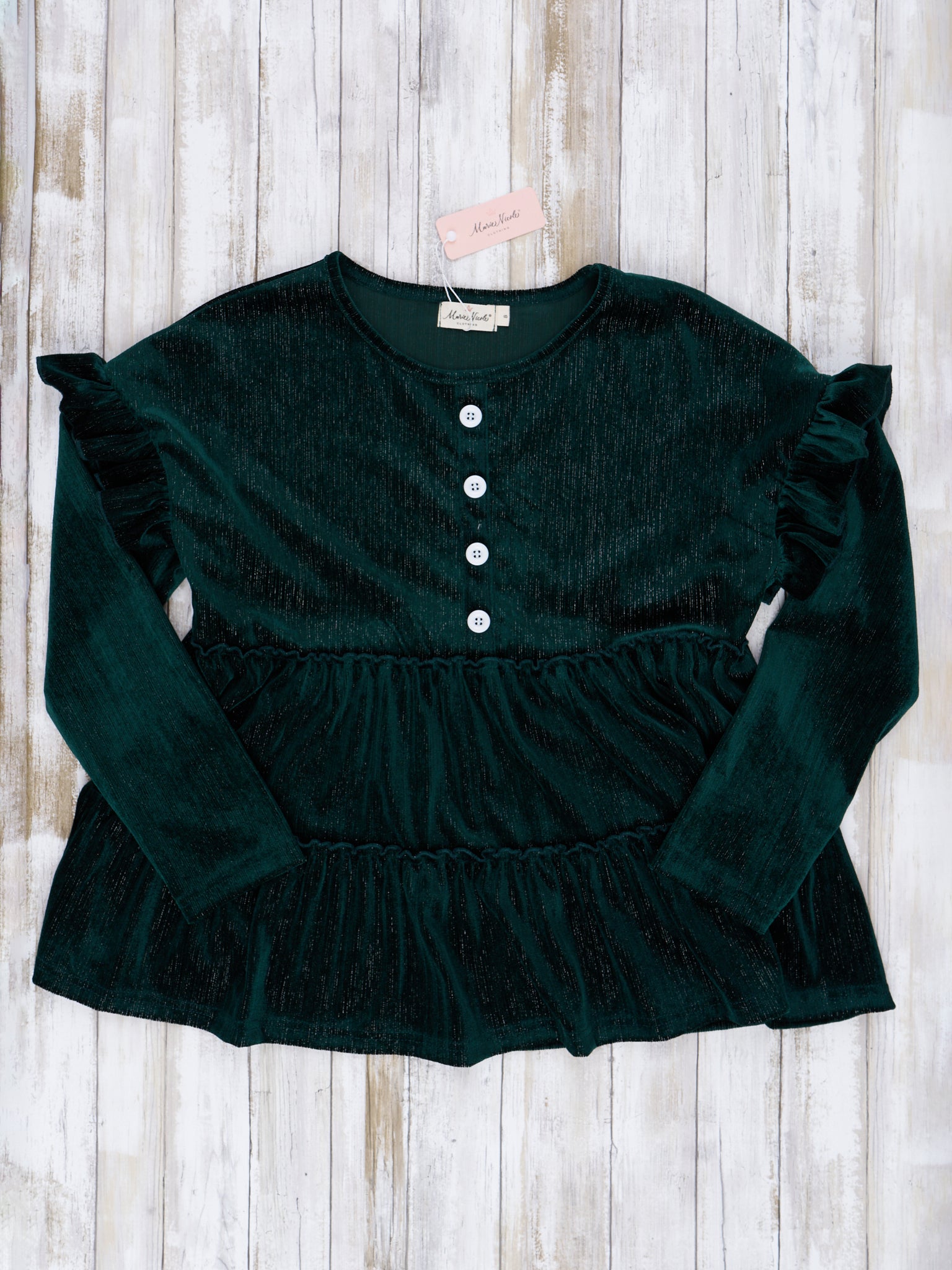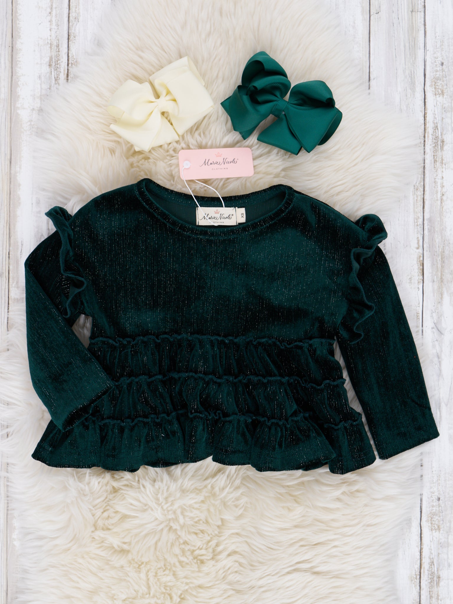 Deep Green Mom & Me Velvet Ruffle Shirt