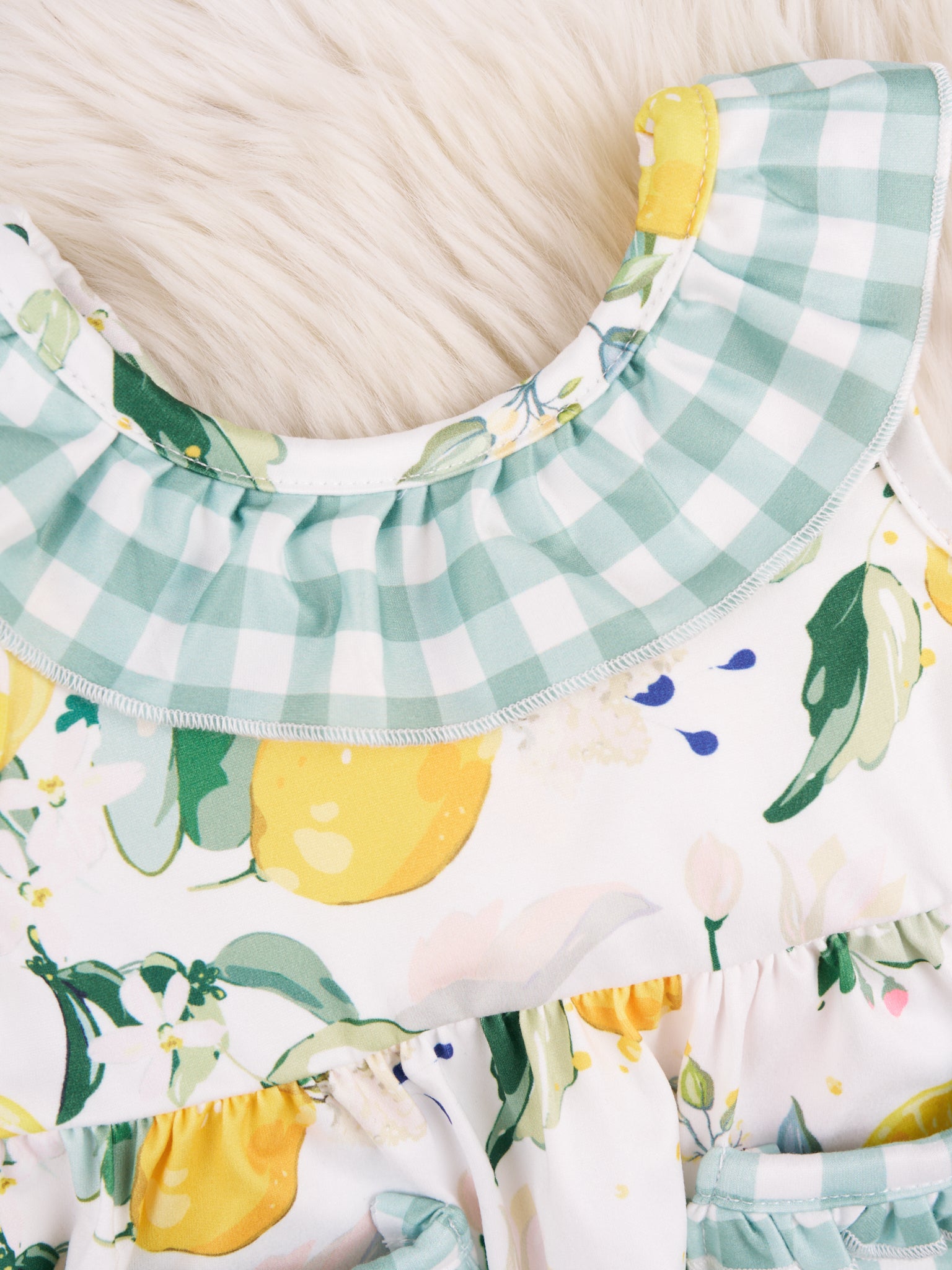 Gingham Lemon Pocket Ruffle Romper