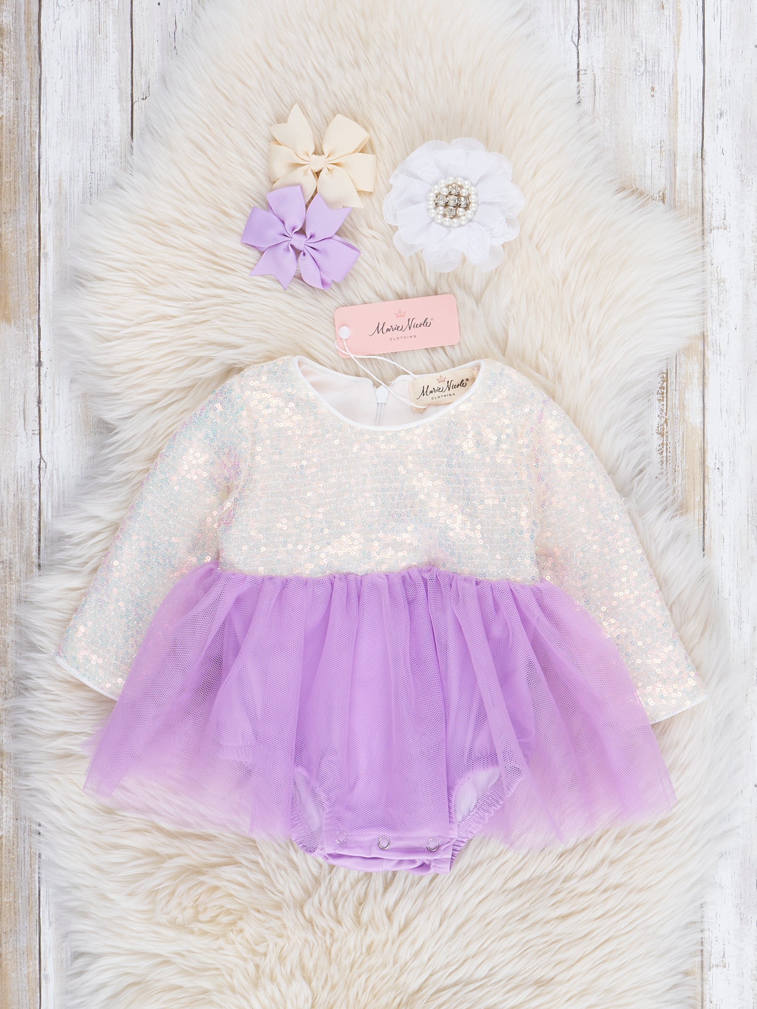 Sparkle and stun in our Lilac Sequin Top Tulle Bubble. The iridescent sequin top adds a touch of glimmer, while the tulle skirt adds a dreamy, feminine element. Perfect for any special occasion. And guaranteed to turn heads!