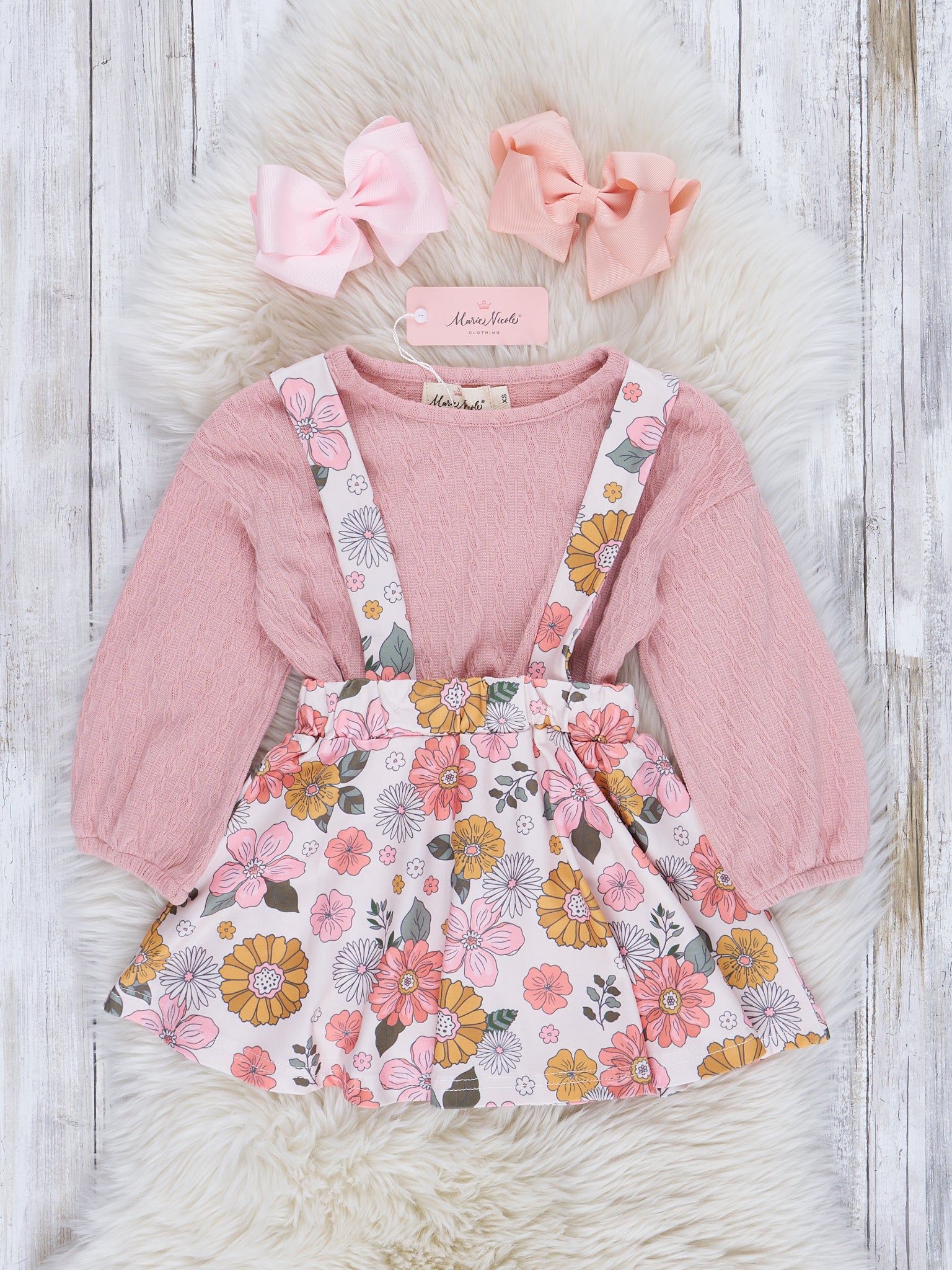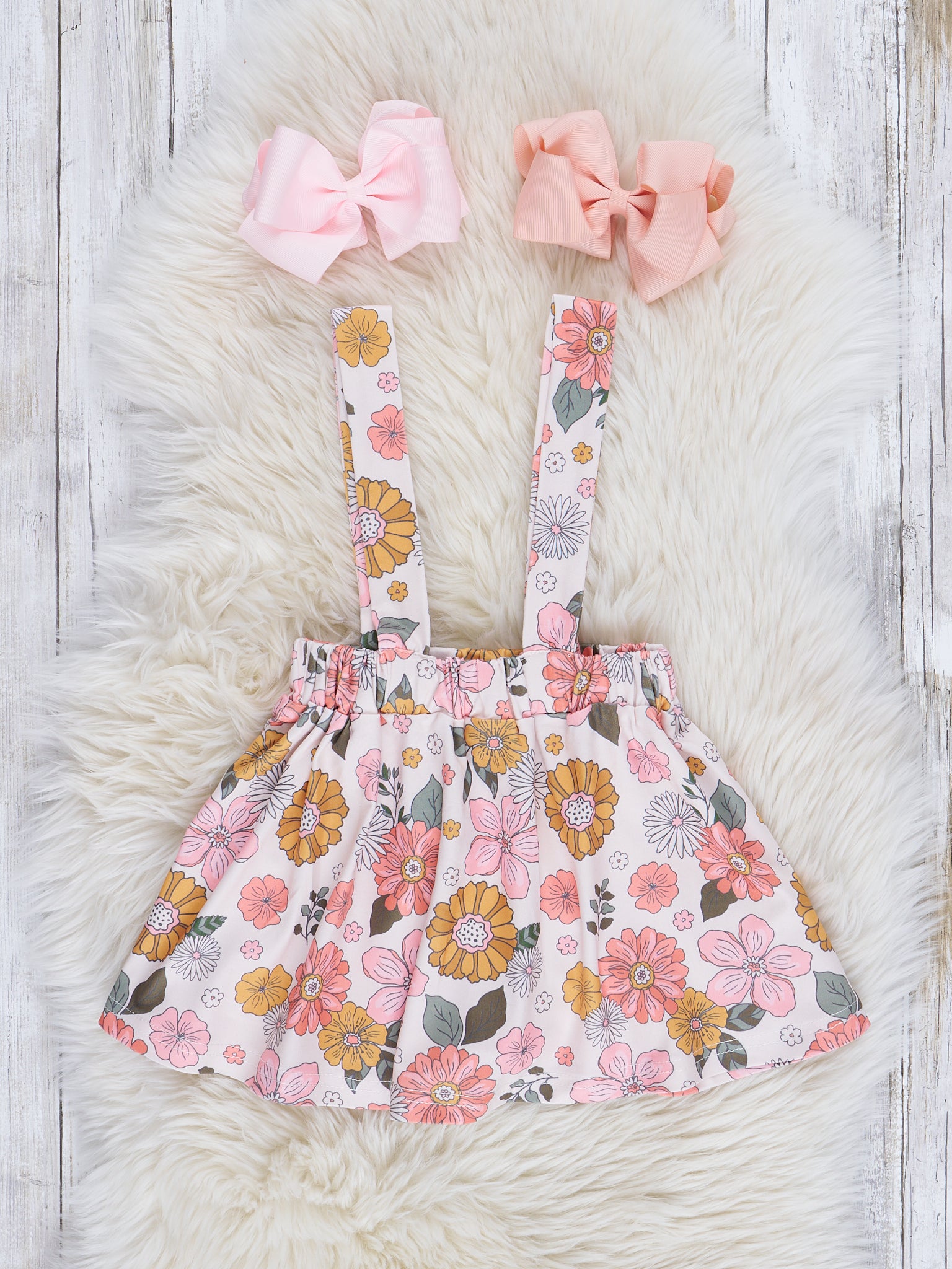 You won't want to miss out on our Pink Marigold Dreams Overalls Set! This comfy, casual set boasts a marigold-printed overall skirt and a pink bubble-sleeve top that'll have you dreaming of summertime. Guaranteed to be a hit with the kids, this set will be sure to put a smile on everyone's face!