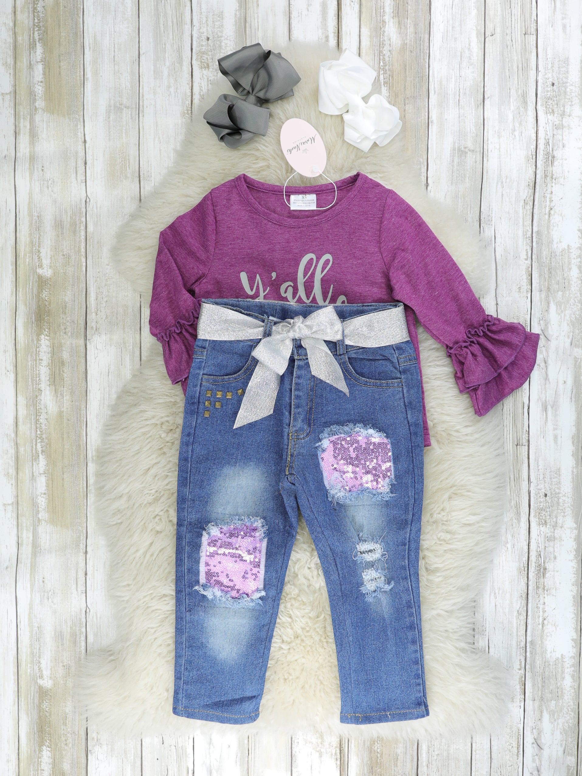 Purple "Y'all Need Jesus" Sequin Denim Outfit