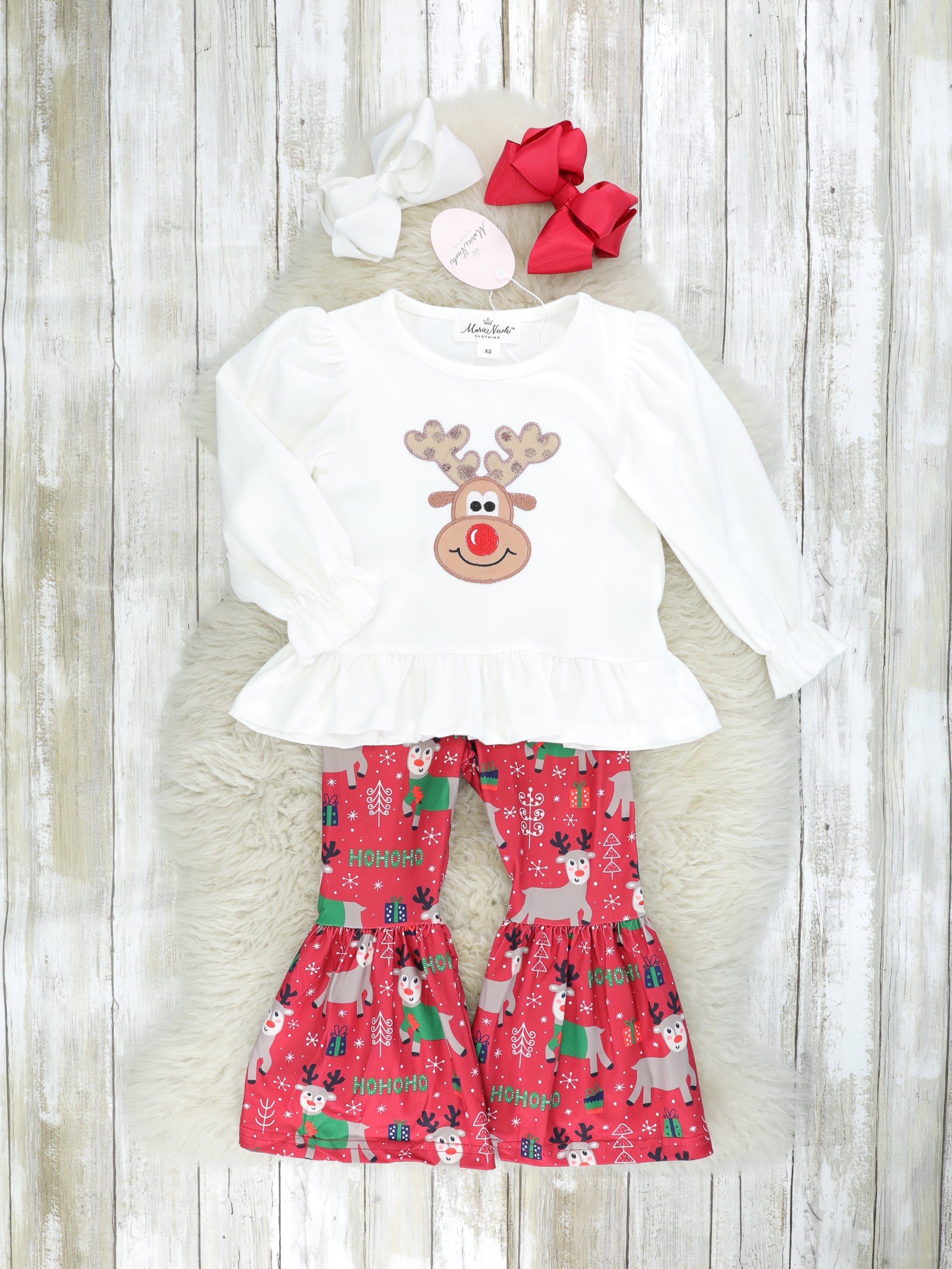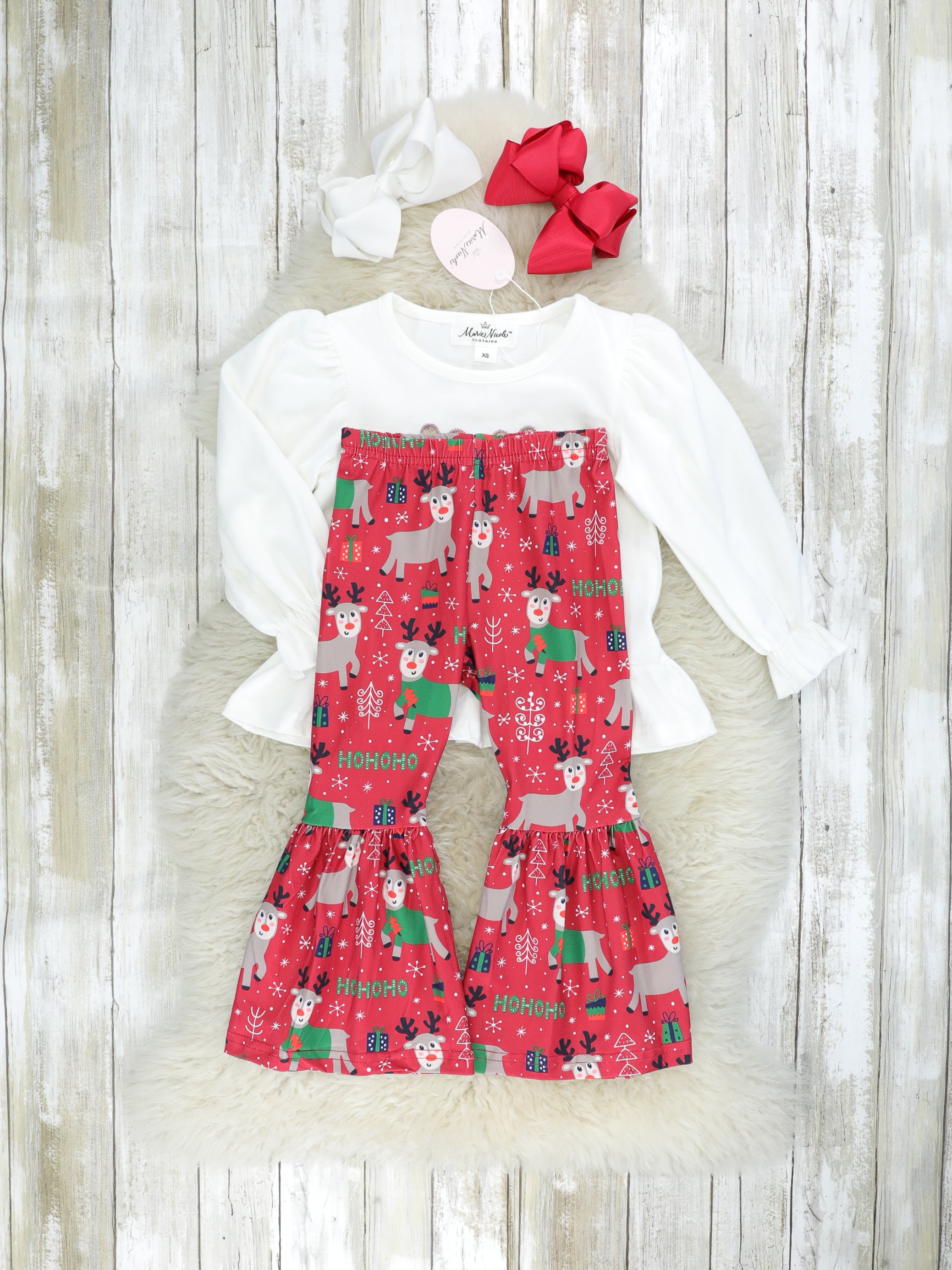 Reindeer Ruffle Top & Bell Bottoms Outfit