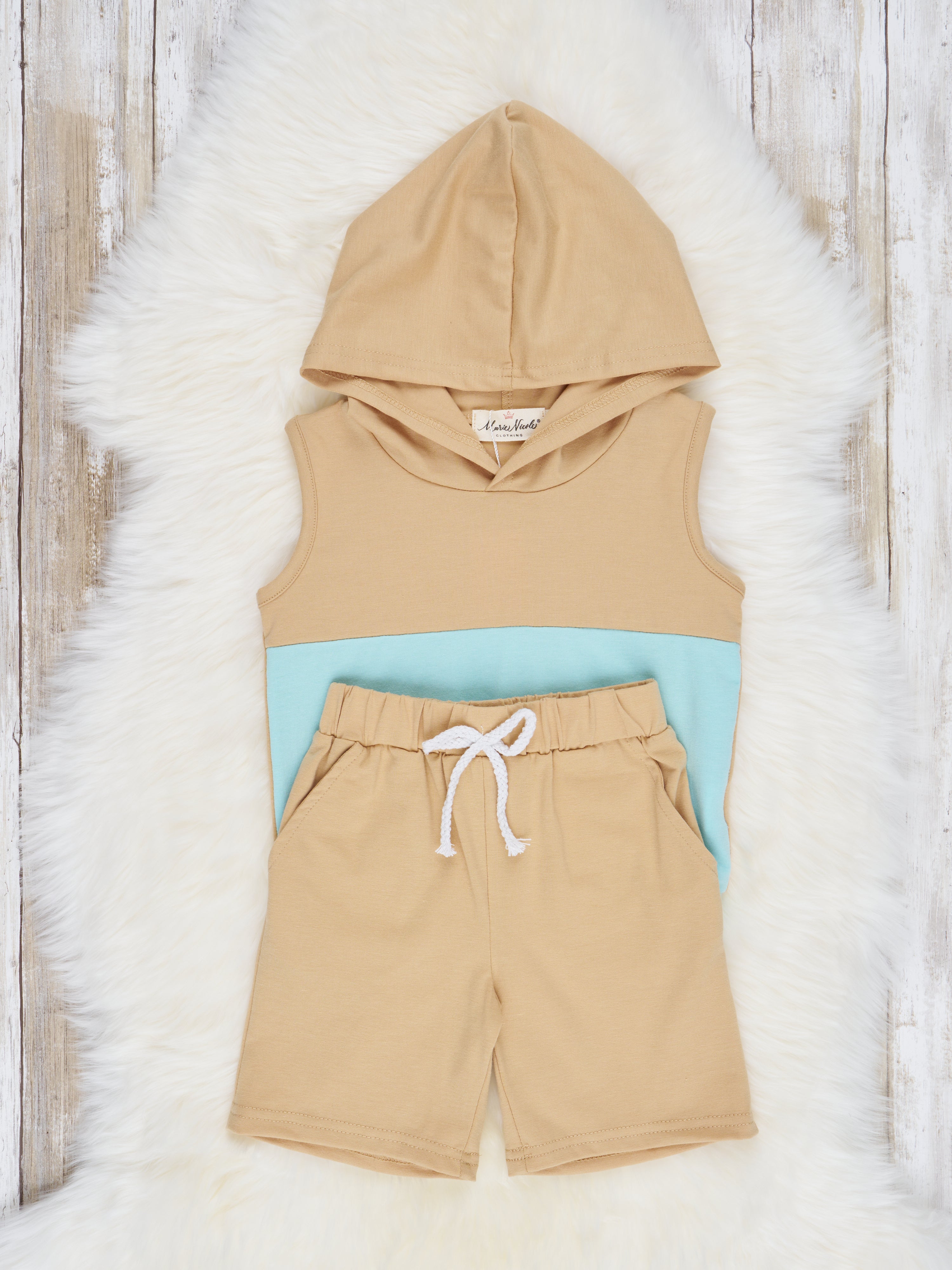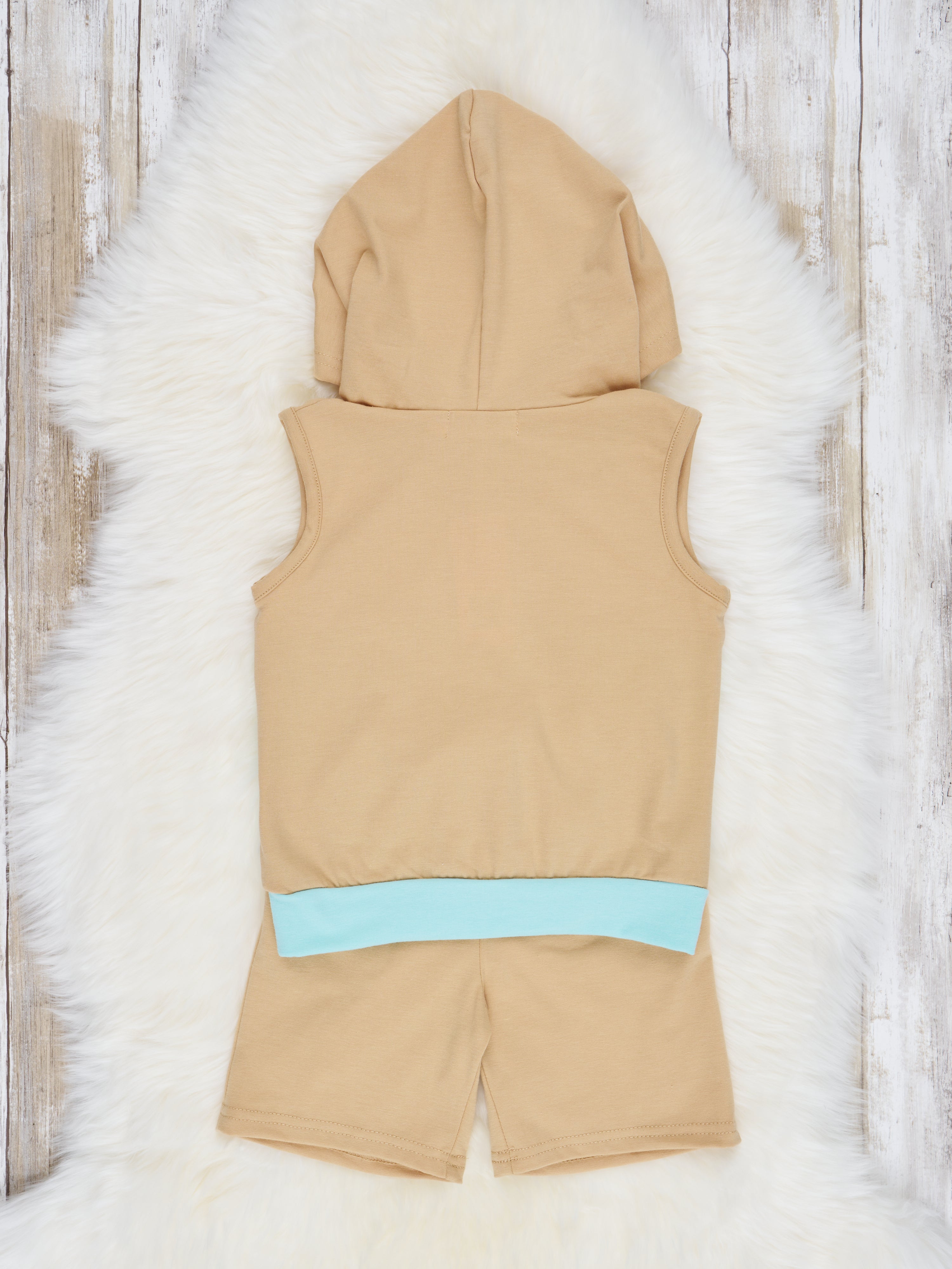 Treat your kiddo to a fun and fashionable look with this Tan & Blue Hoodie Outfit – perfect for all their summer adventures! The two-piece outfit includes a cozy hoodie tank and stylish shorts with an elastic waistband for ultimate comfort. What a chic and comfy way to have fun!