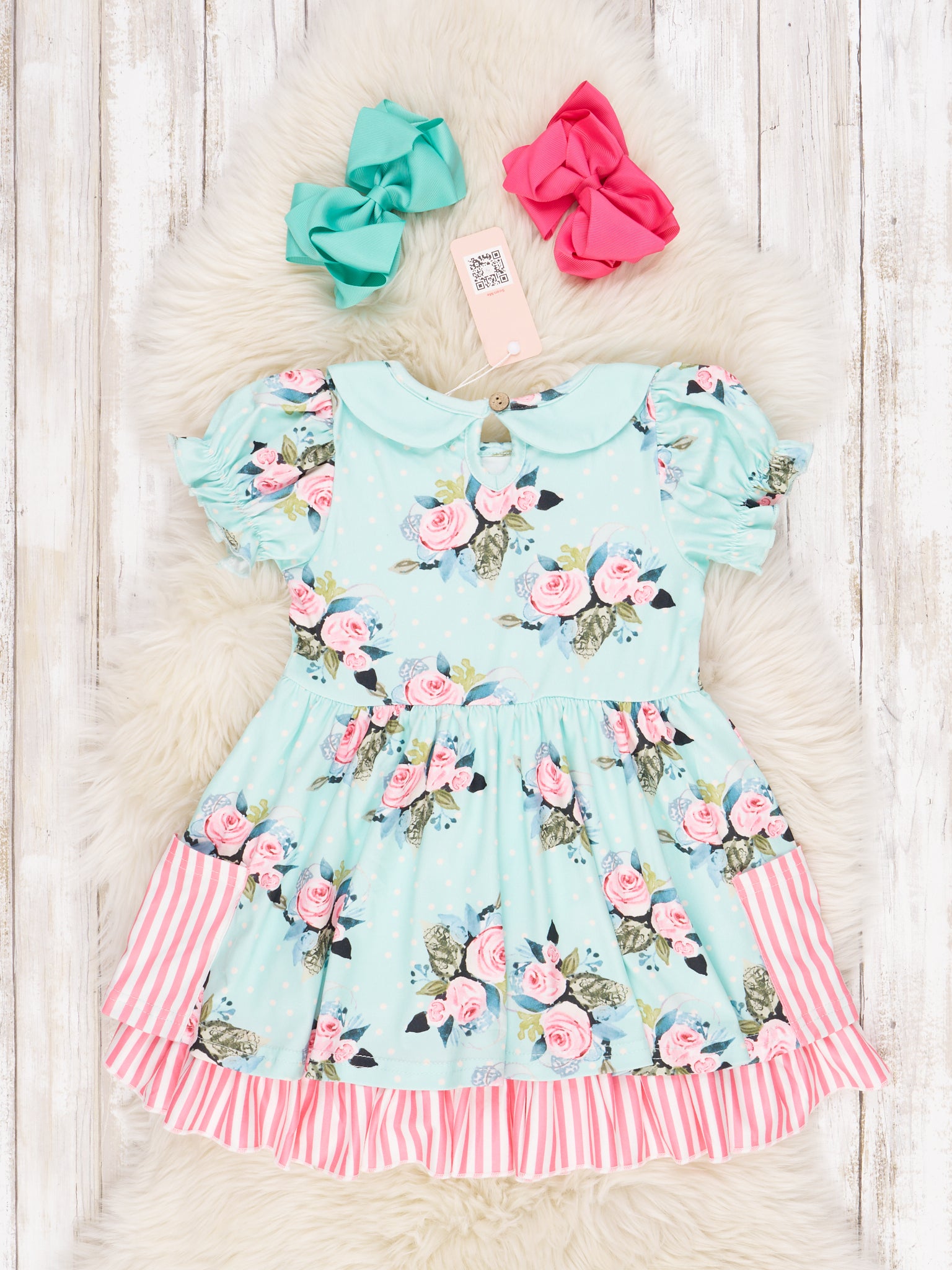 Let your little one blossom in this Vintage Rose Ruffle Pocket Dress! This delightful dress is perfect for tea parties, strolls in the park, or any special occasion, featuring a classic peter pan collar, pretty rose print, and pockets for stashing tiny treasures. She'll radiate joy in this one-of-a-kind ensemble!