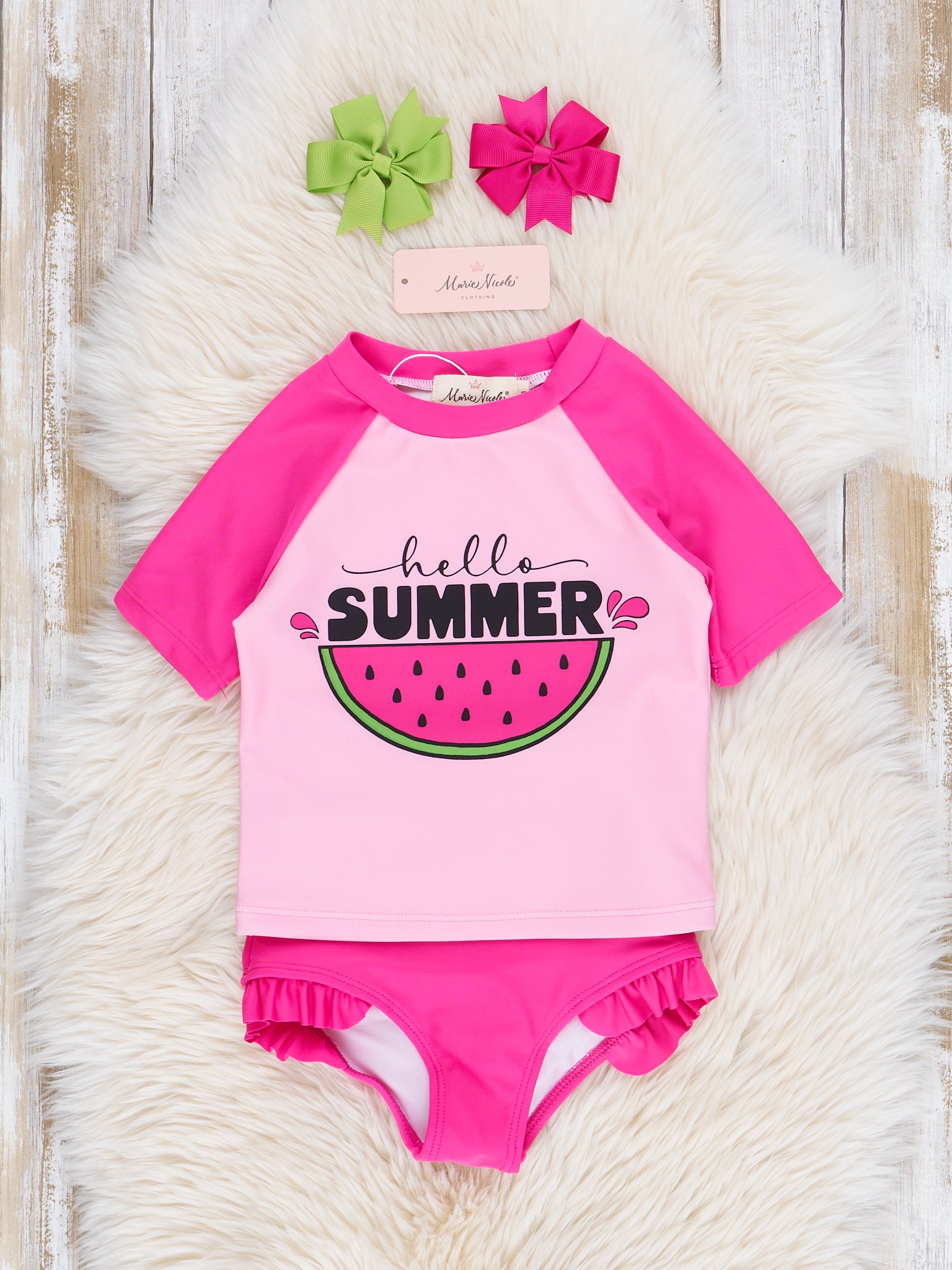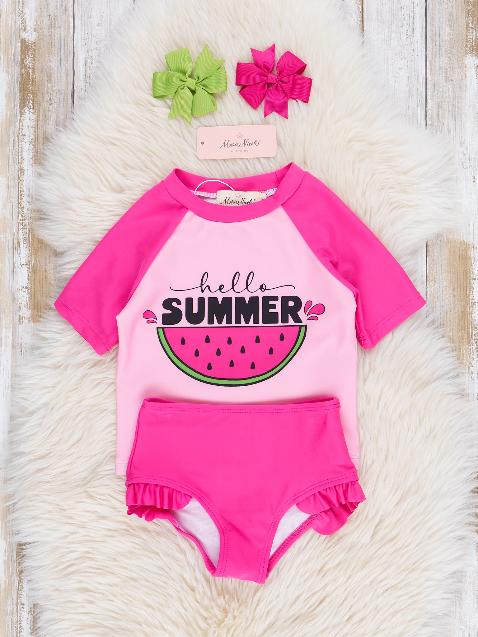 Watermelon Summer Rashguard Ruffle Swimsuit