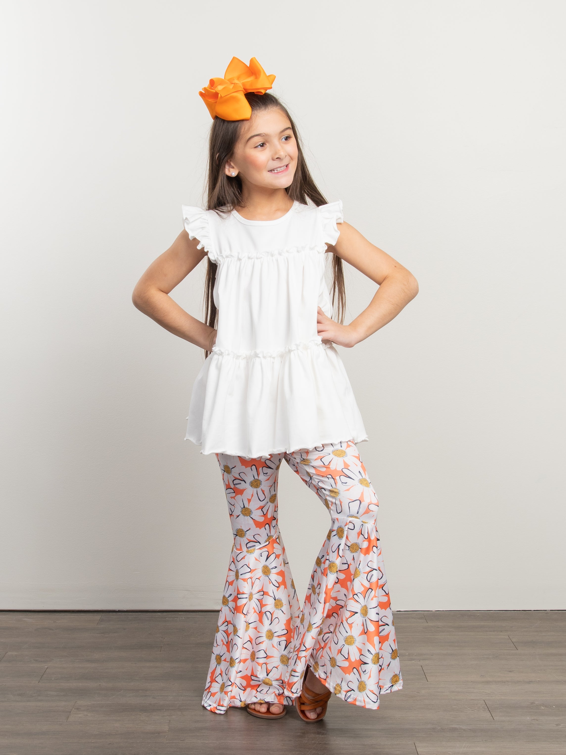 These adorable basic tunics are perfect for comfort & style! This white tunic features tiered ruffles, flutter sleeves, & a keyhole at the back of the neck.