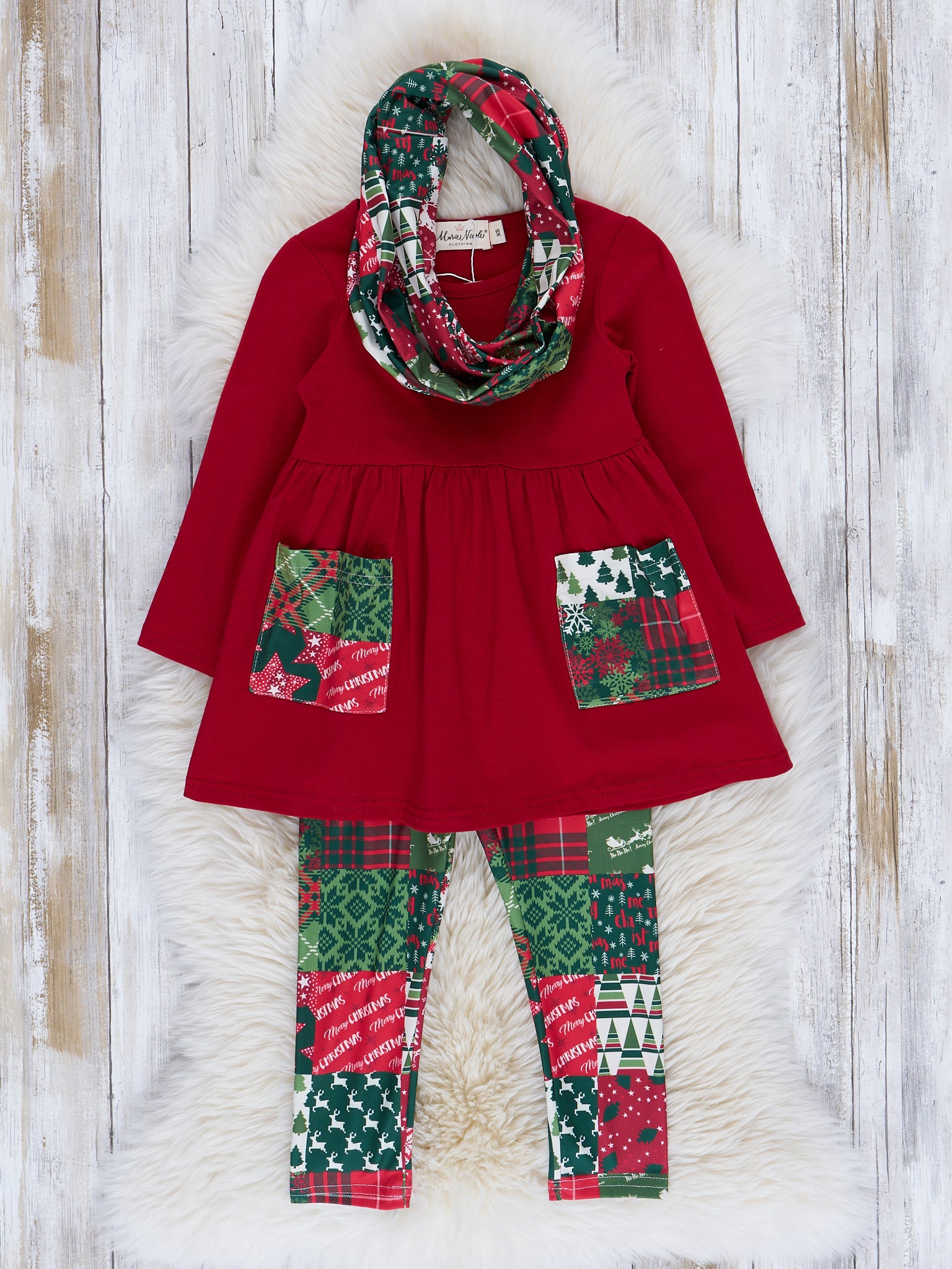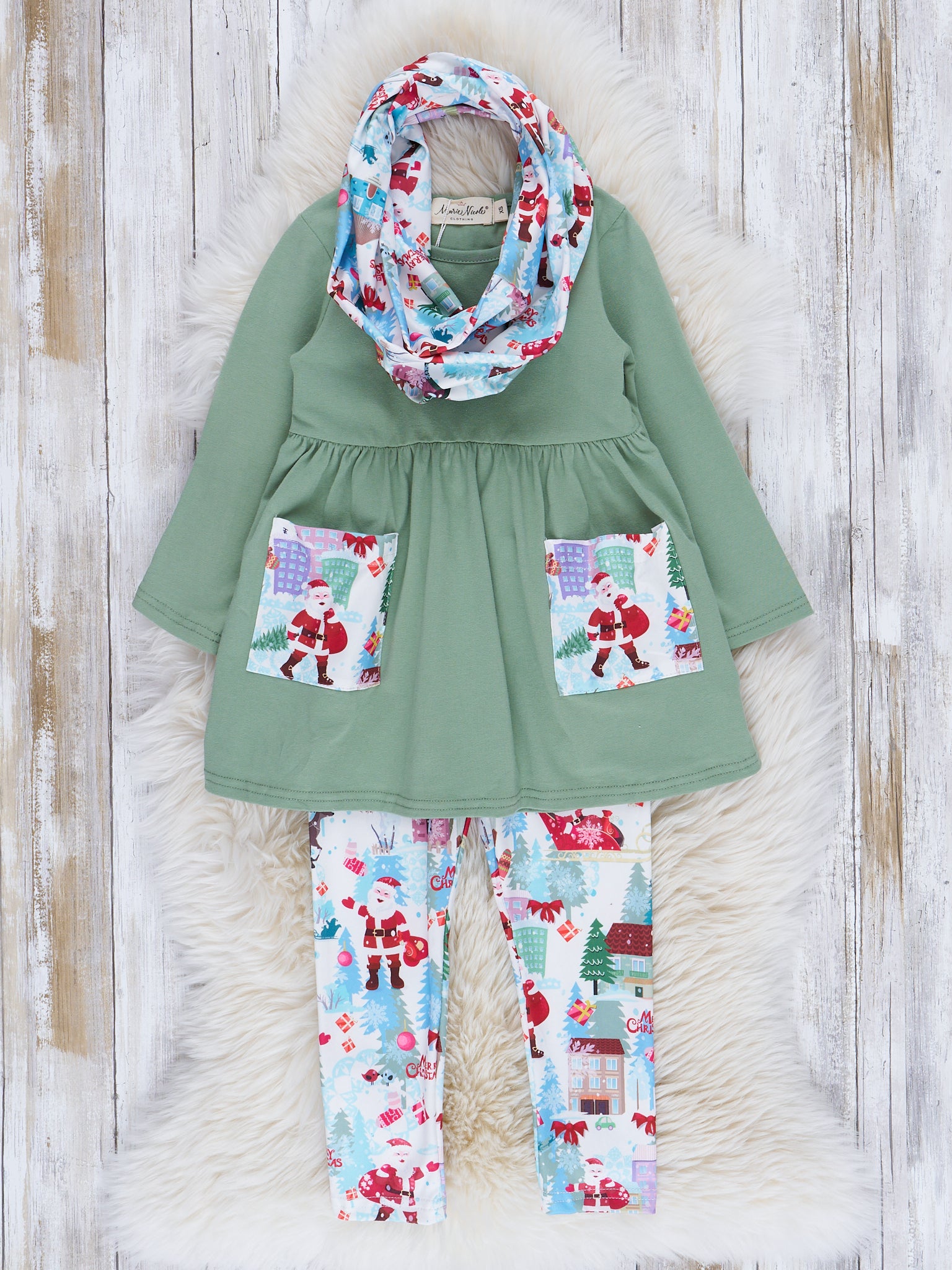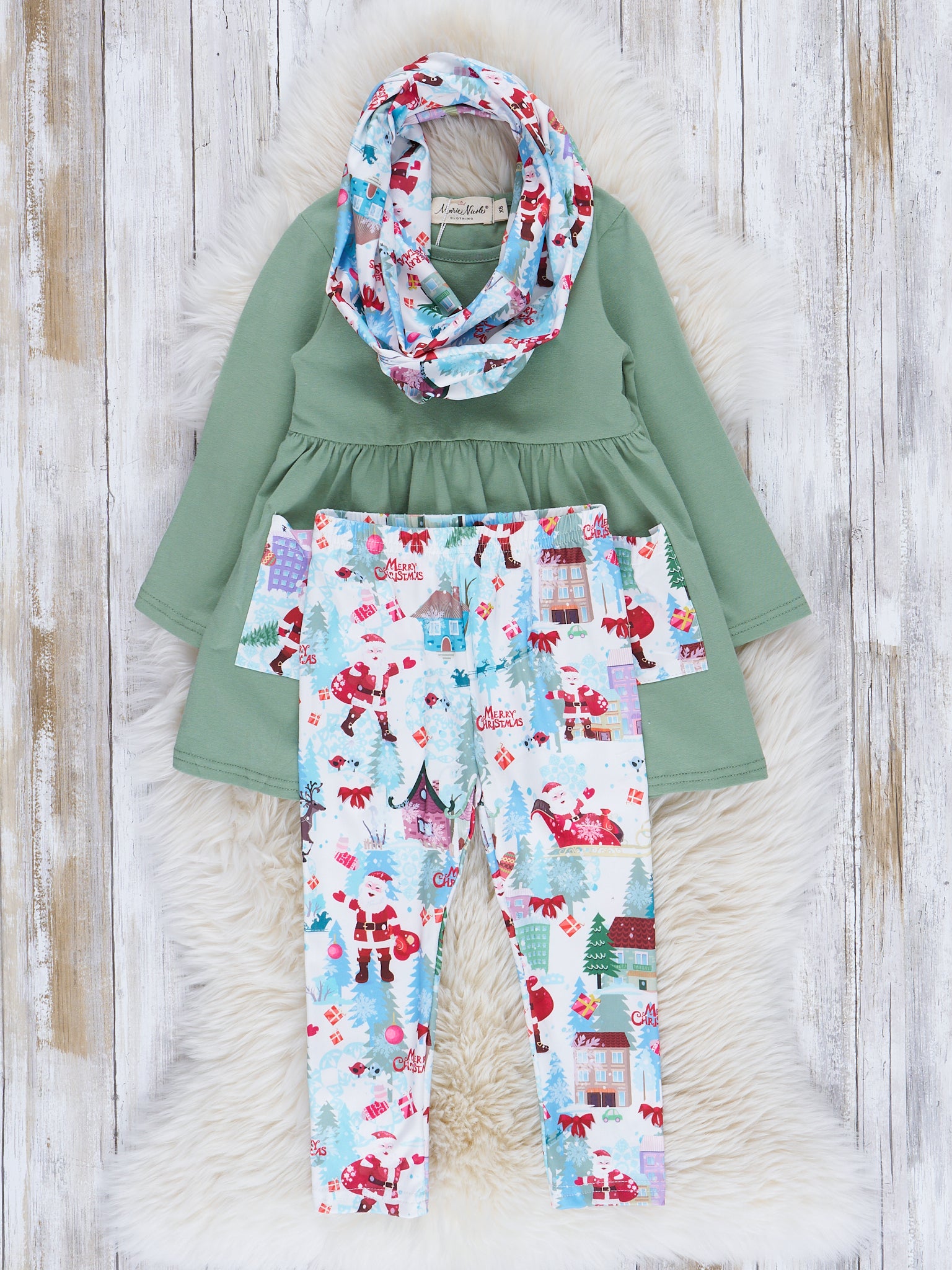 Cozy up for the holidays with this cute Winter Wonderland Outfit! Featuring a swing top with convenient front pockets and holiday patterned leggings, you'll be ready to make snow angels all day long! Spread some holiday cheer in this stylish set!