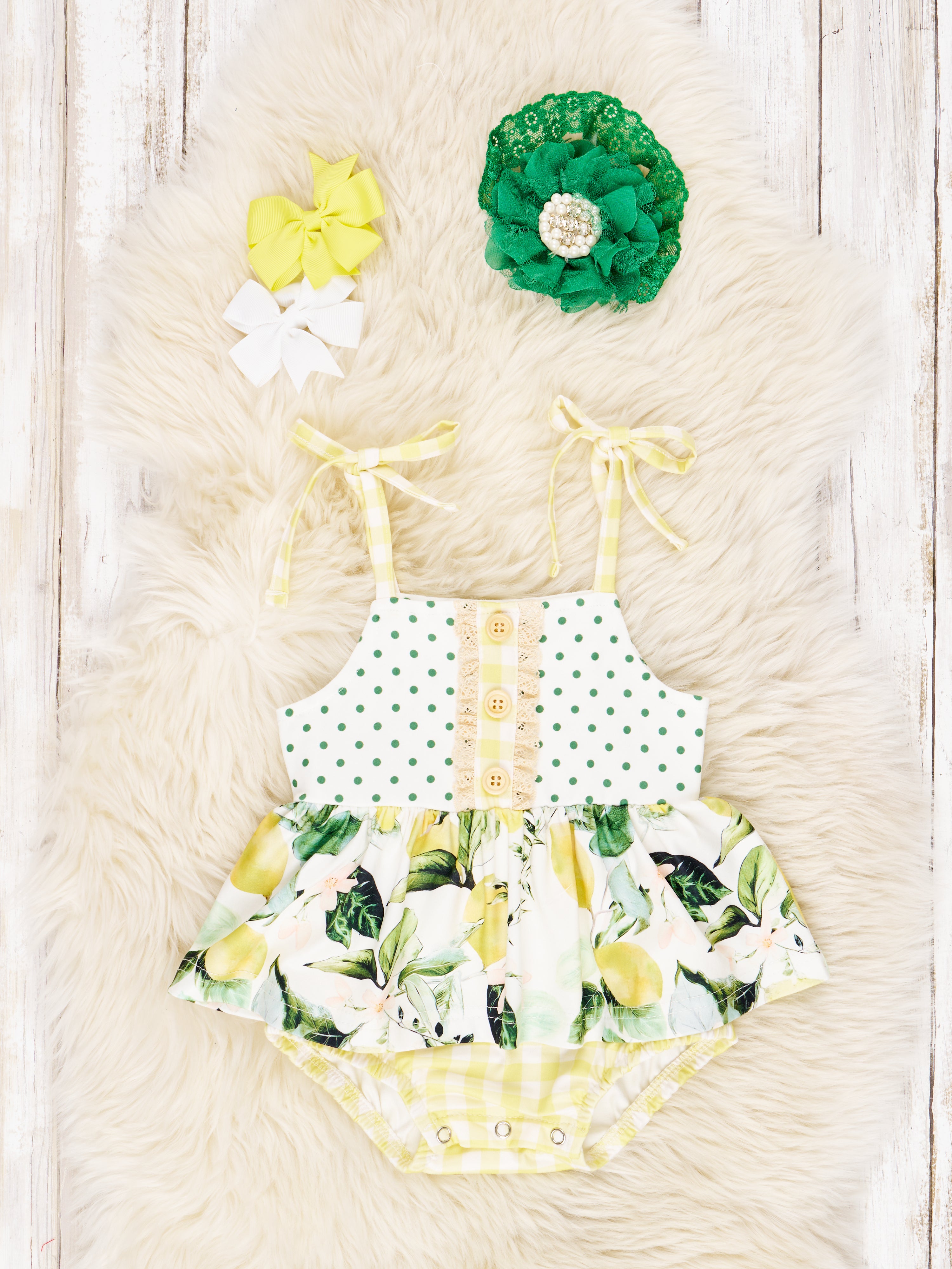 Ice Blue Farm Friends Plaid Ruffle Romper