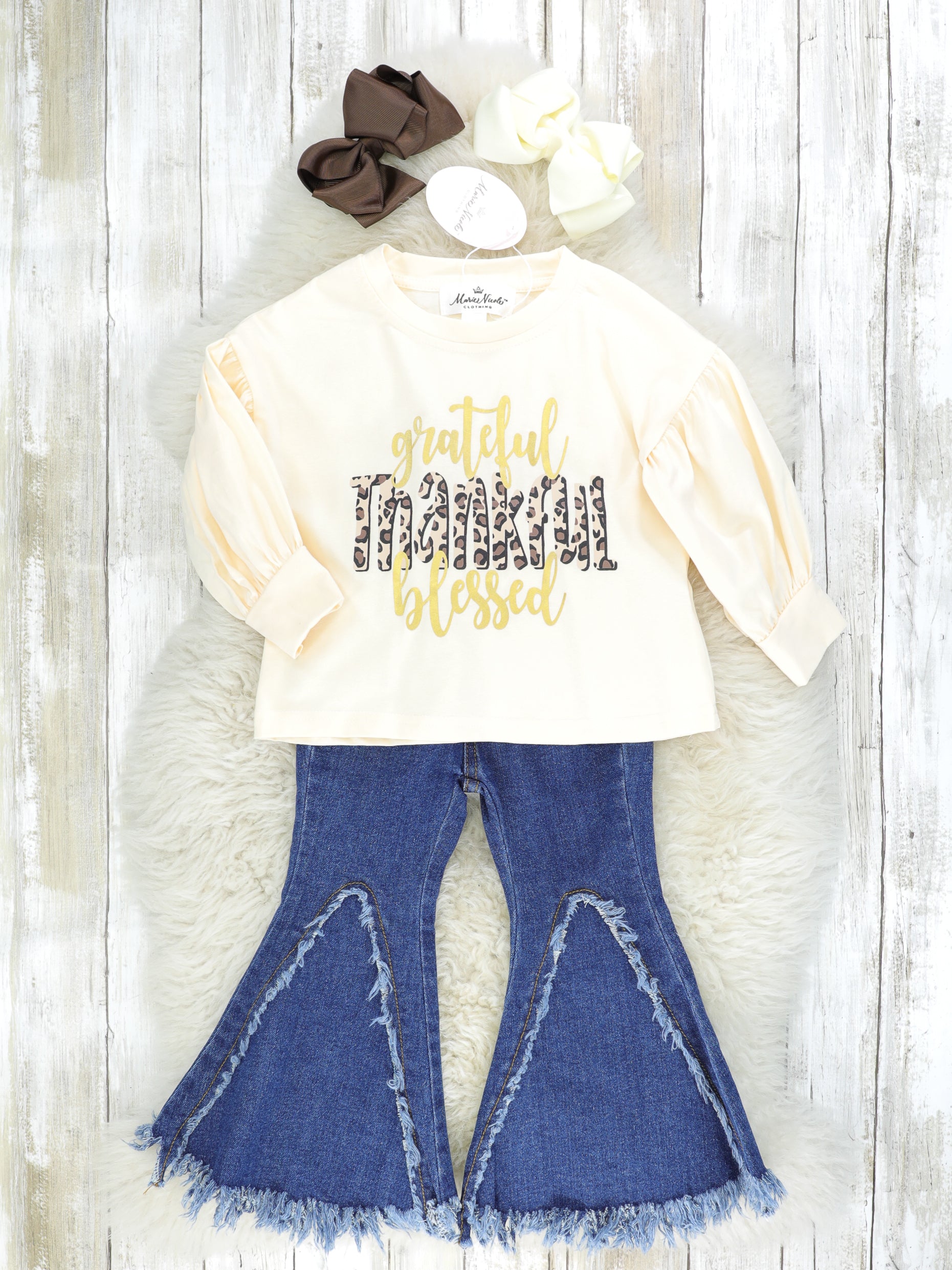 "Thankful" Leopard Top & Denim Bell Bottoms