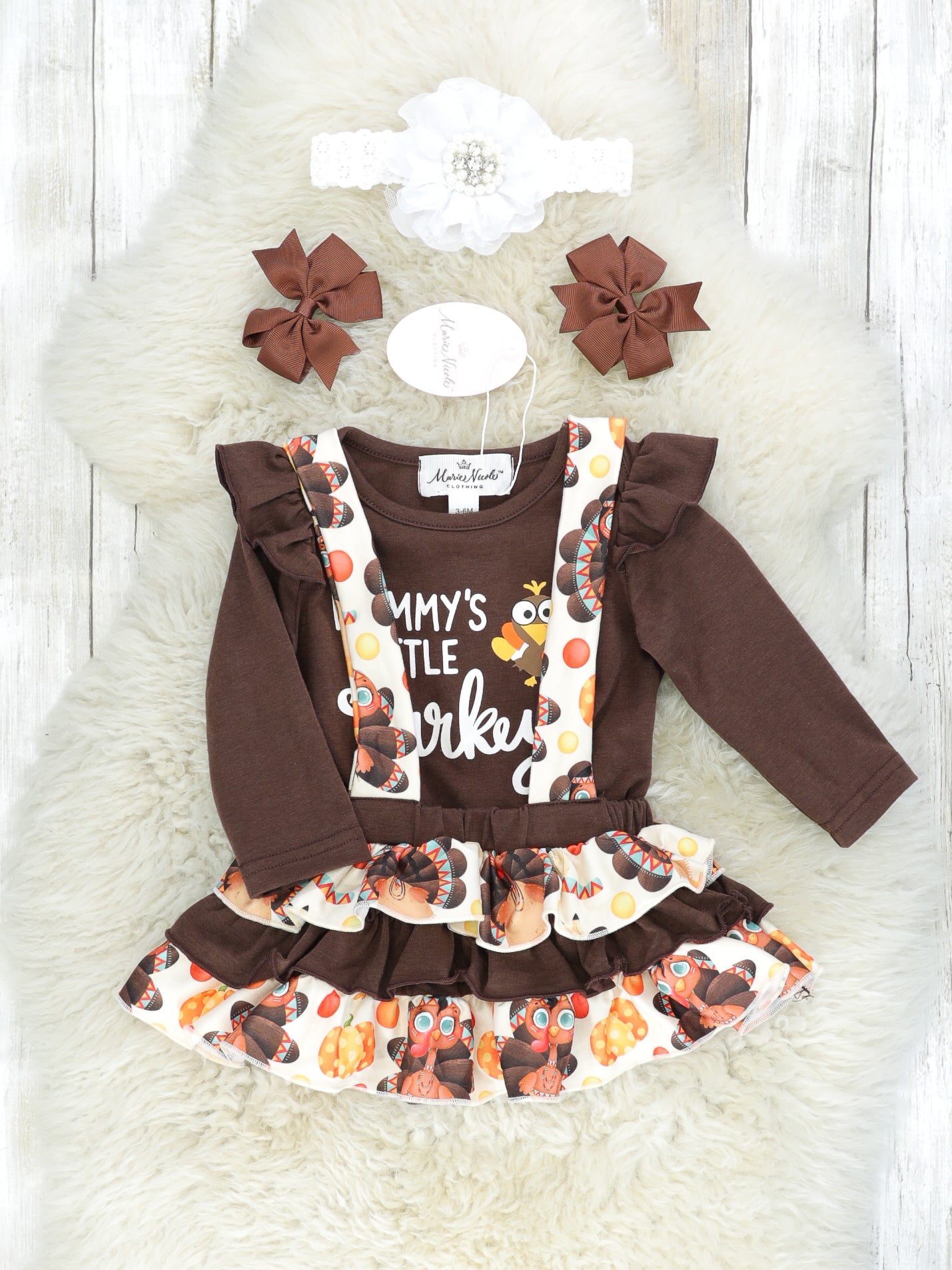 "Mommy's Little Turkey" Ruffle Overall Romper