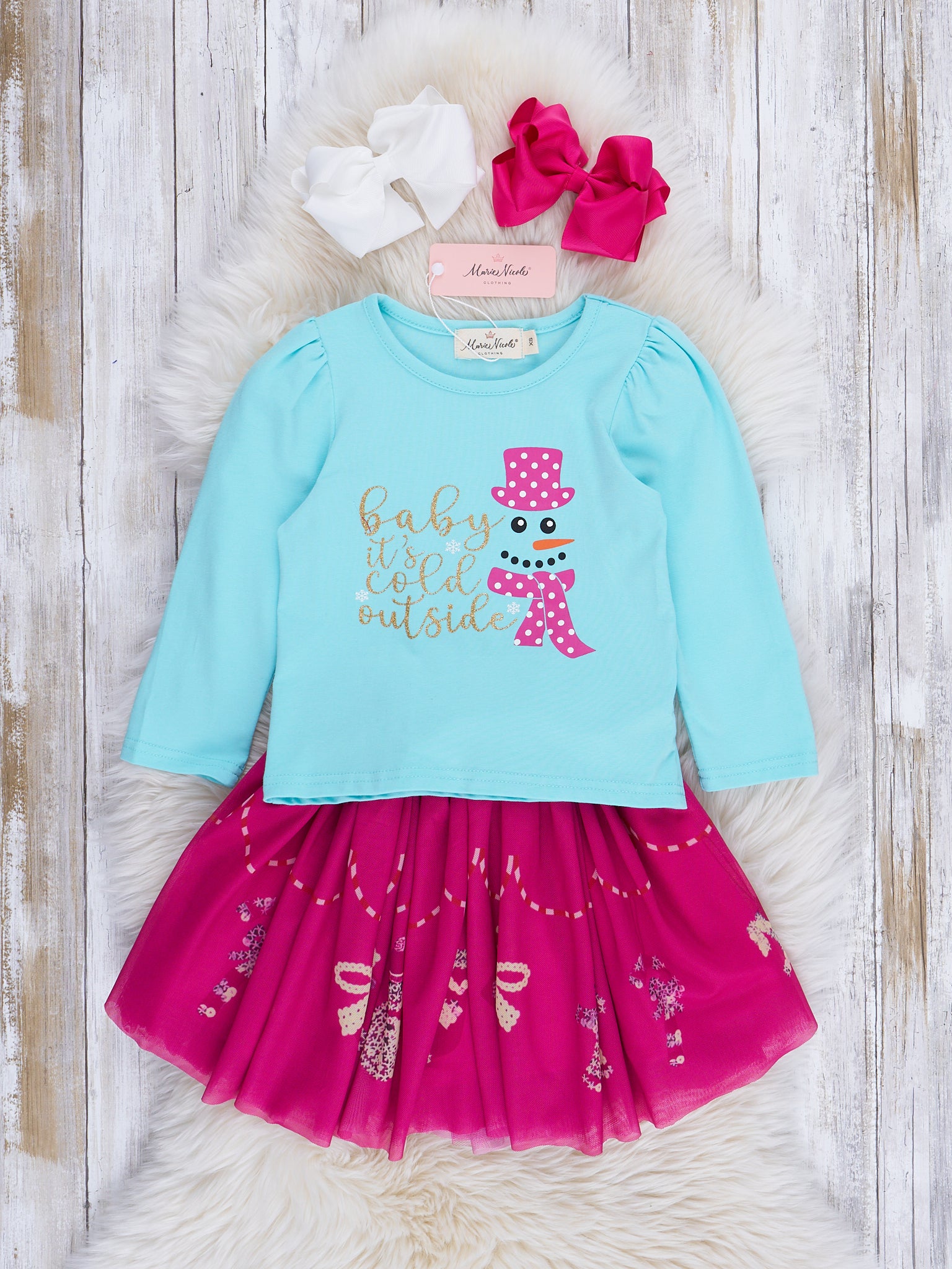 Aqua & Magenta Snowman Outfit w/ Skirt