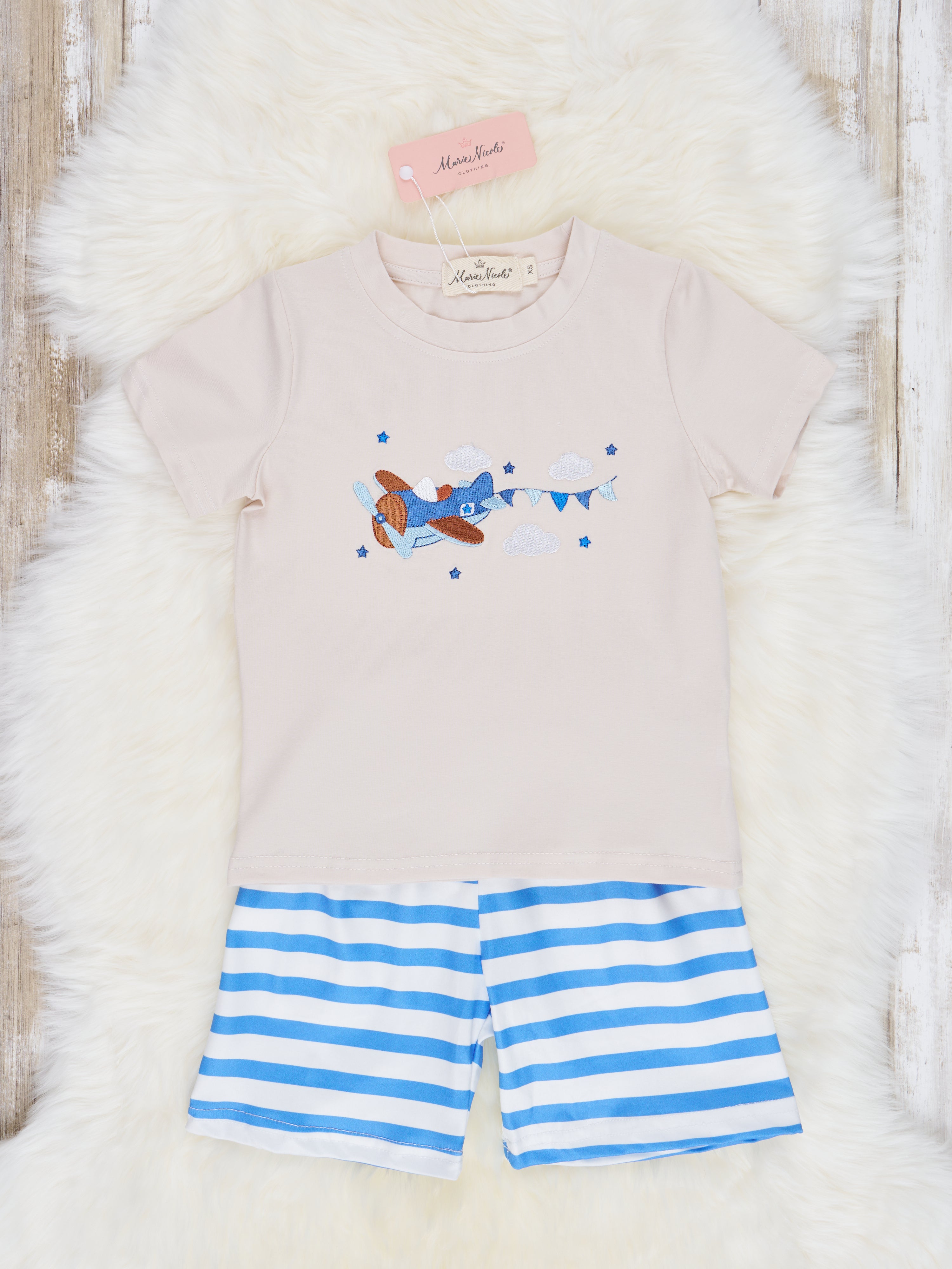 Aqua Embroidered Turkey Striped Raglan Shirt