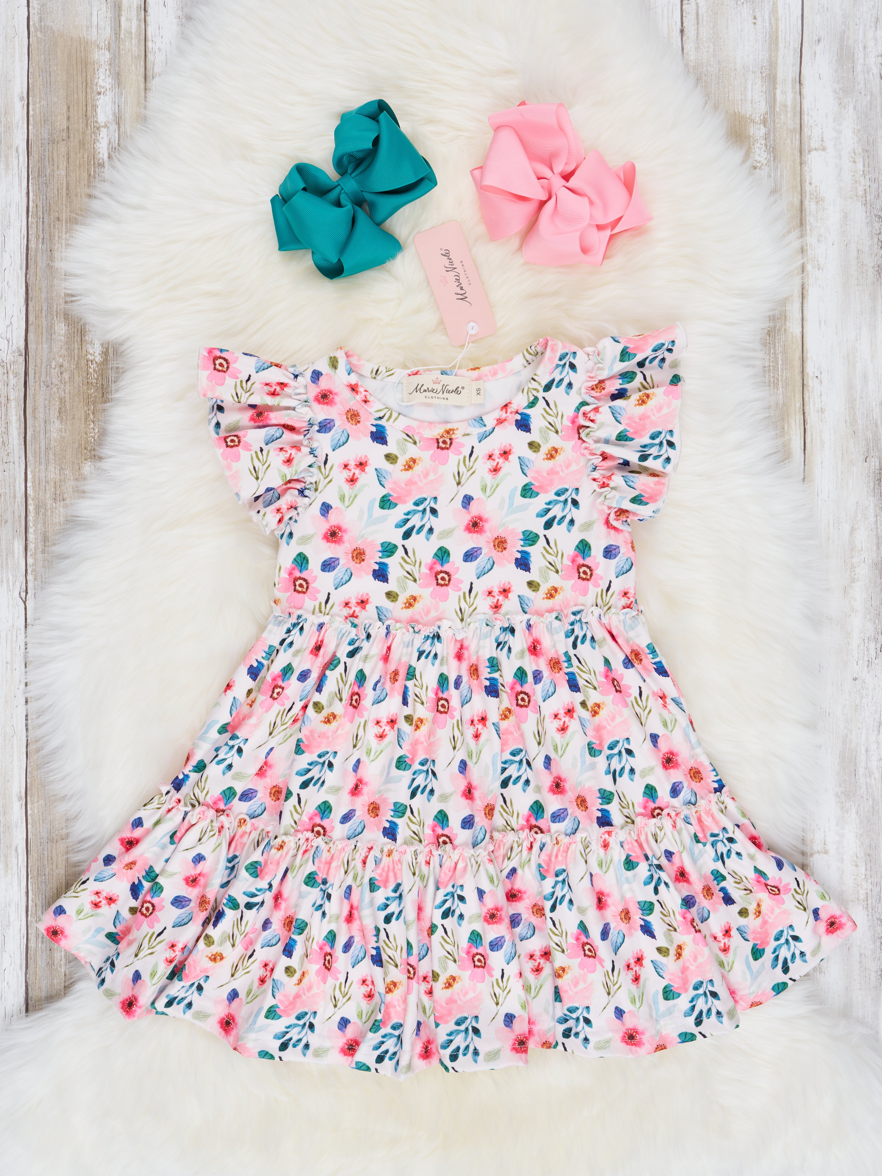 Baby Pink Cotton Flutter Sleeve Peplum Bubble