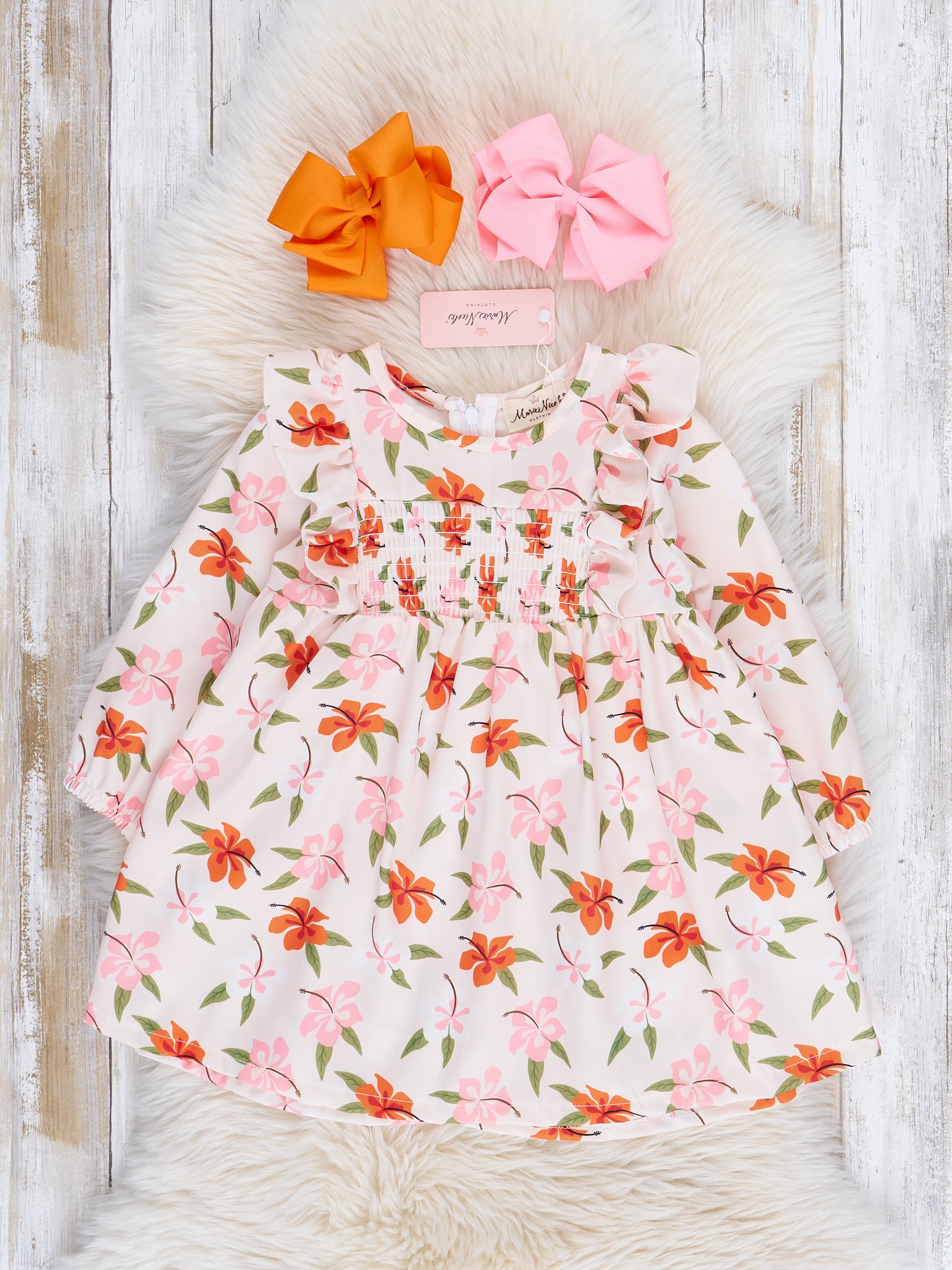 Pink & Orange Wildflowers Smocked Ruffle Dress