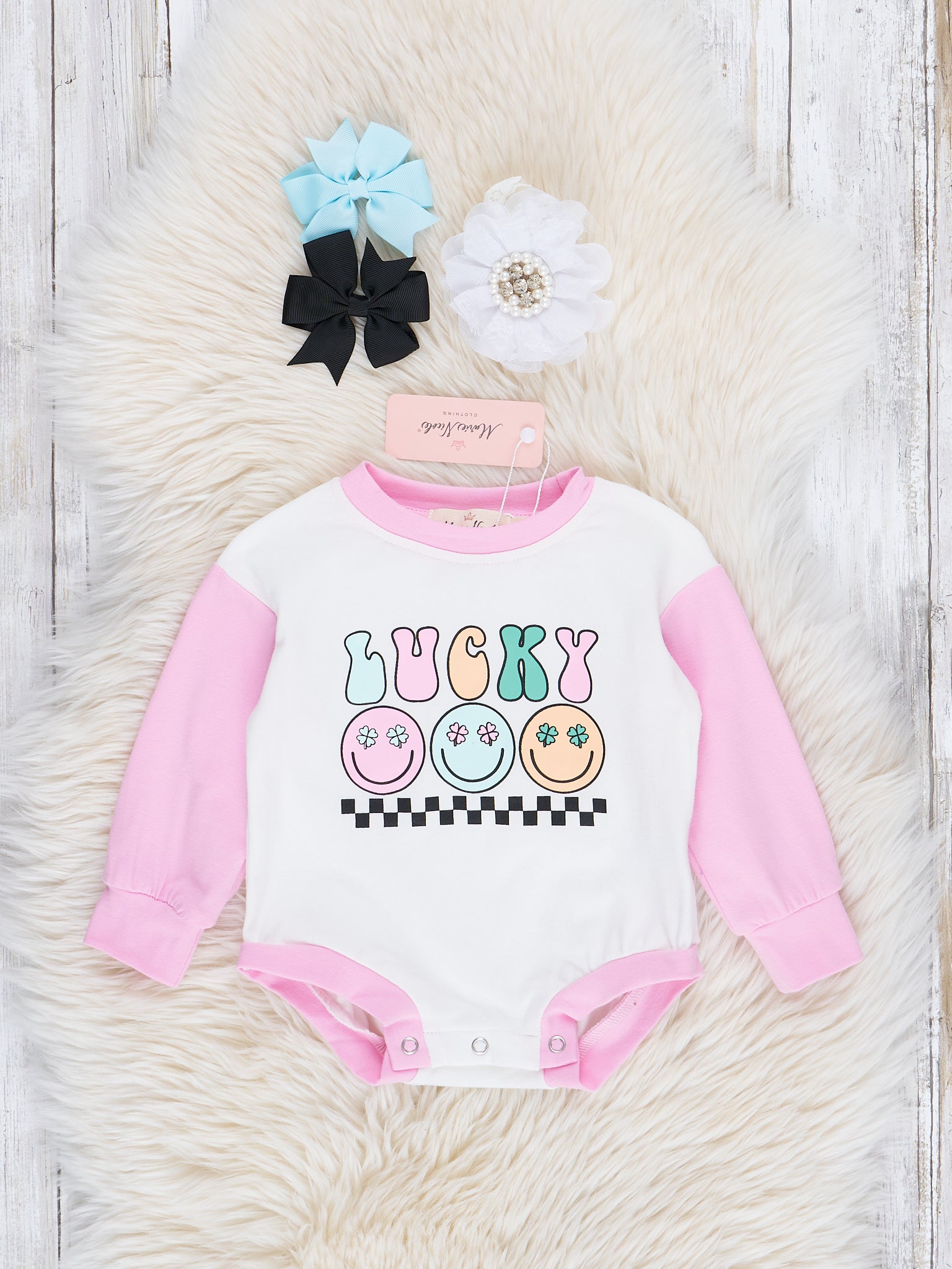 Pink Polka Dot & Floral Piggy Ruffle Outfit