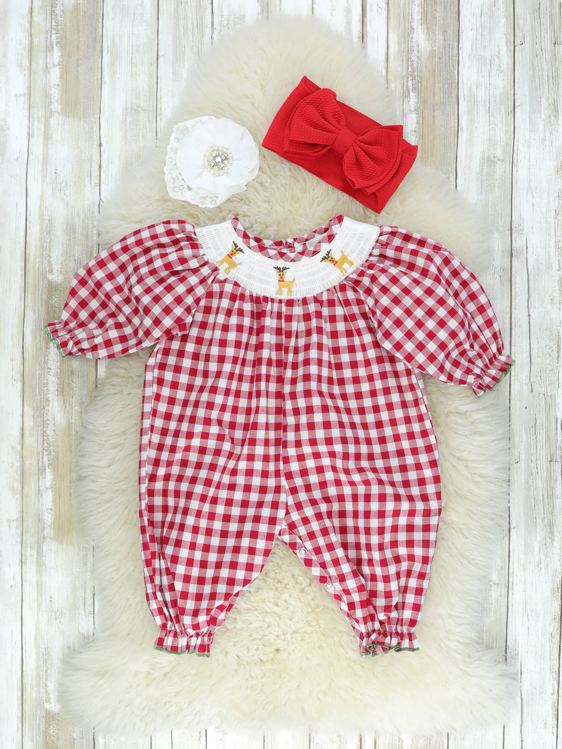 Red Plaid Gingerbread Pocket Ruffle Dress
